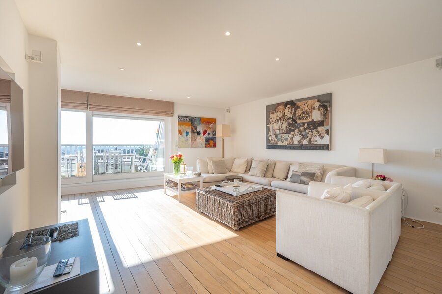 Gemeubelde penthouse gelegen op de Kustlaan met open zicht op de villa's in het Zoute
