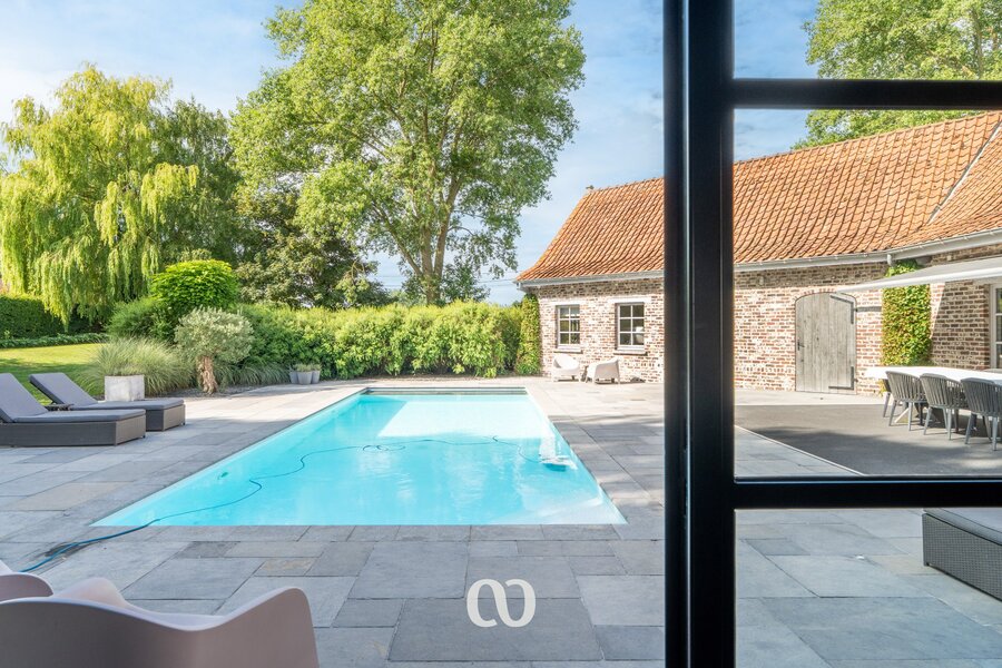 De hoeve biedt een unieke combinatie van ruimte, licht en comfort, met een warm en uitnodigend interieur. Rond het zwembad geniet je van een zuidgeoriënteerd terras, perfect voor ontspanning of gezellige momenten met vrienden en familie.