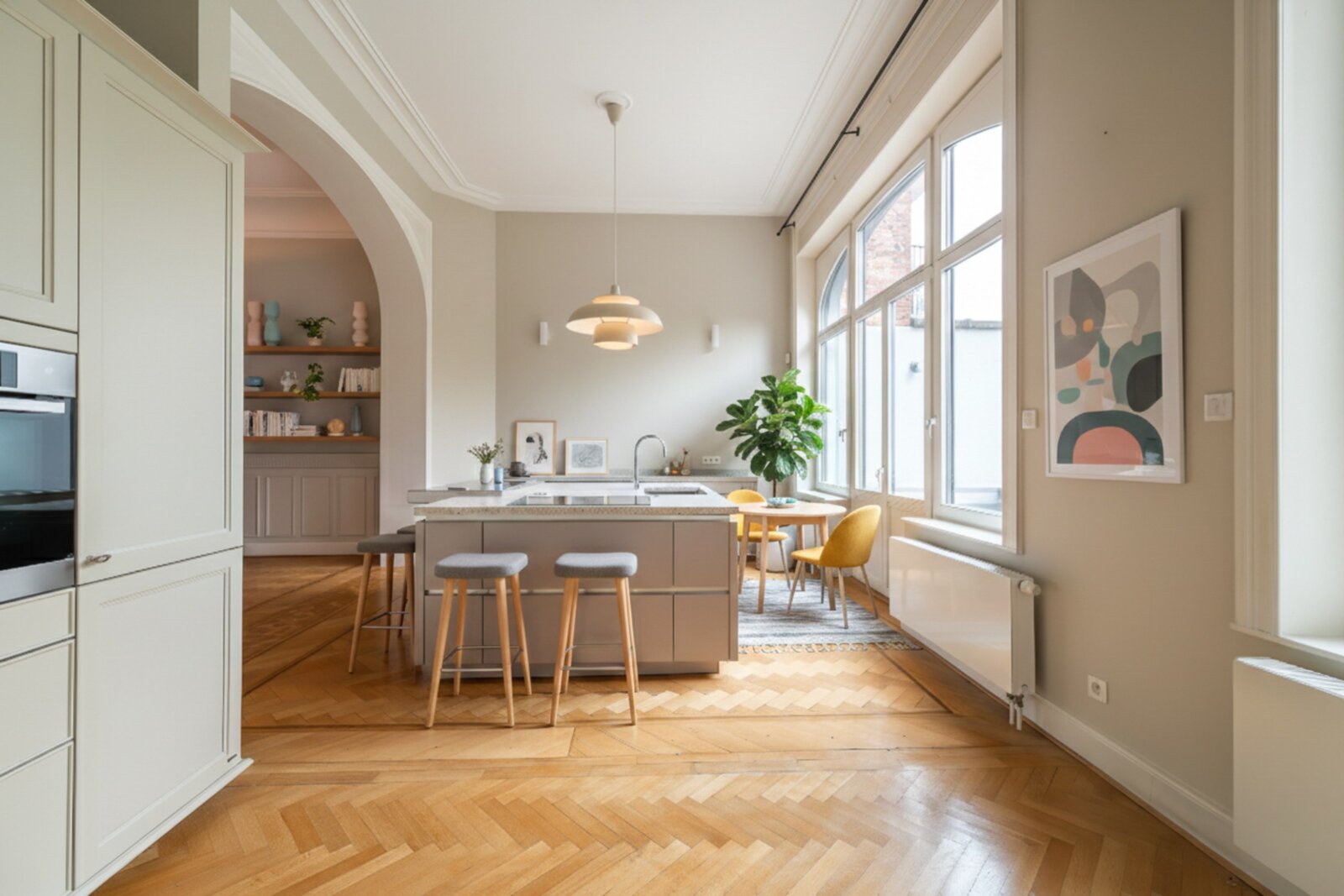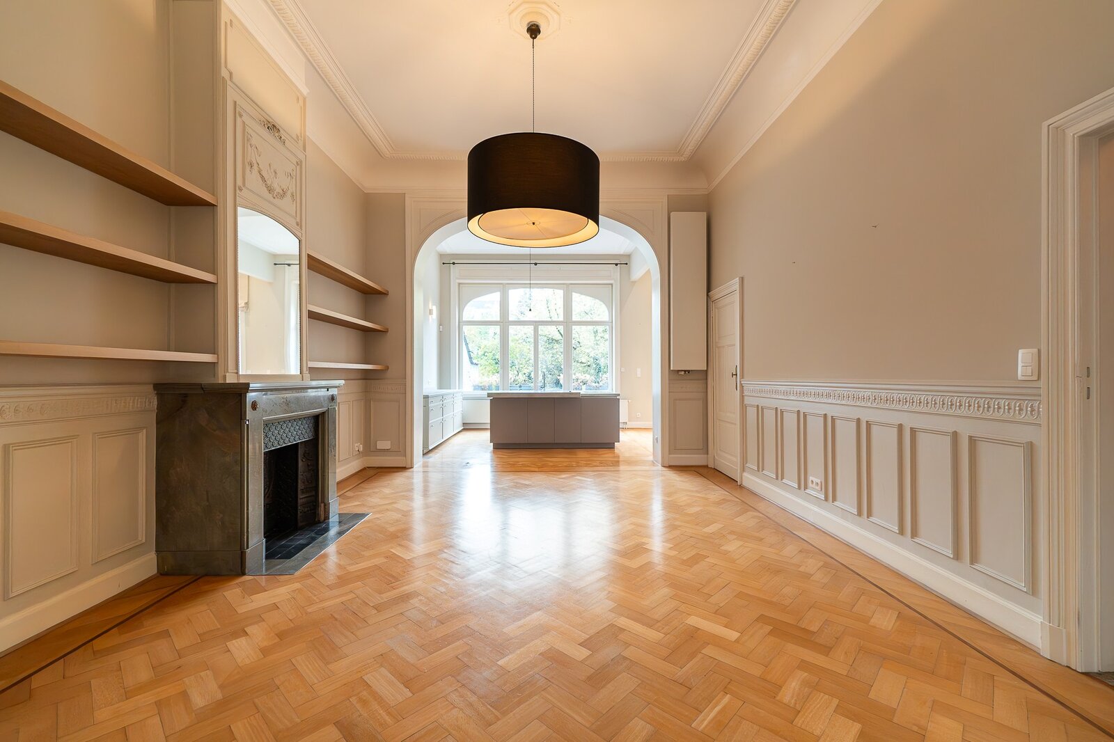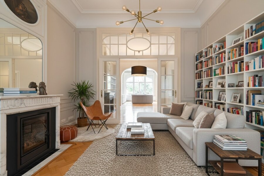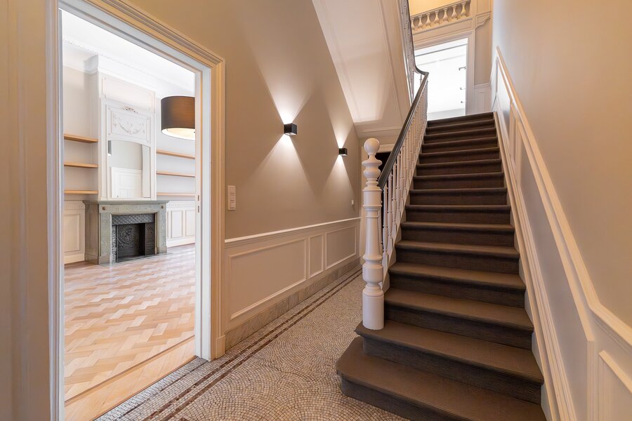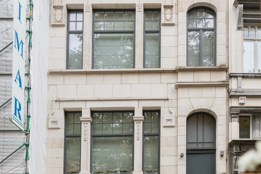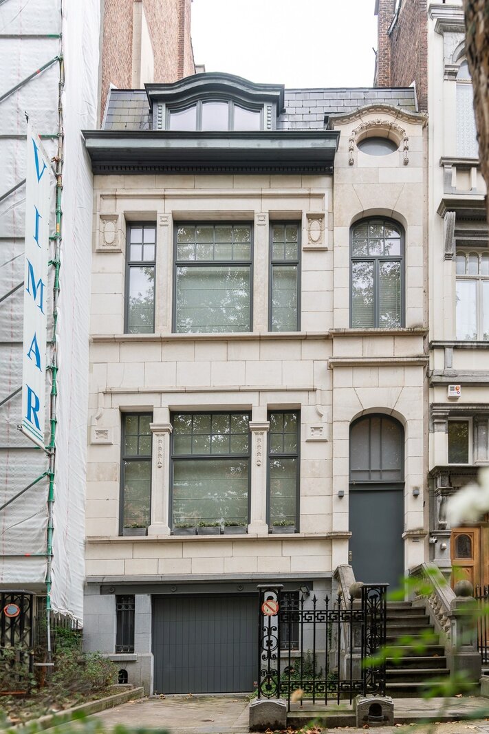 Gelegen in de gewilde Molièrewijk, onderscheidt deze volledig gerenoveerde herenwoning van ongeveer 520 m² zich door haar elegante Franse natuurstenen gevel van 7,5 meter en haar zuidgerichte tuin op een perceel van ± 3 are. De woning beschikt over vijf slaapkamers en een dubbele garage met twee bijkomende buitenstaanplaatsen.