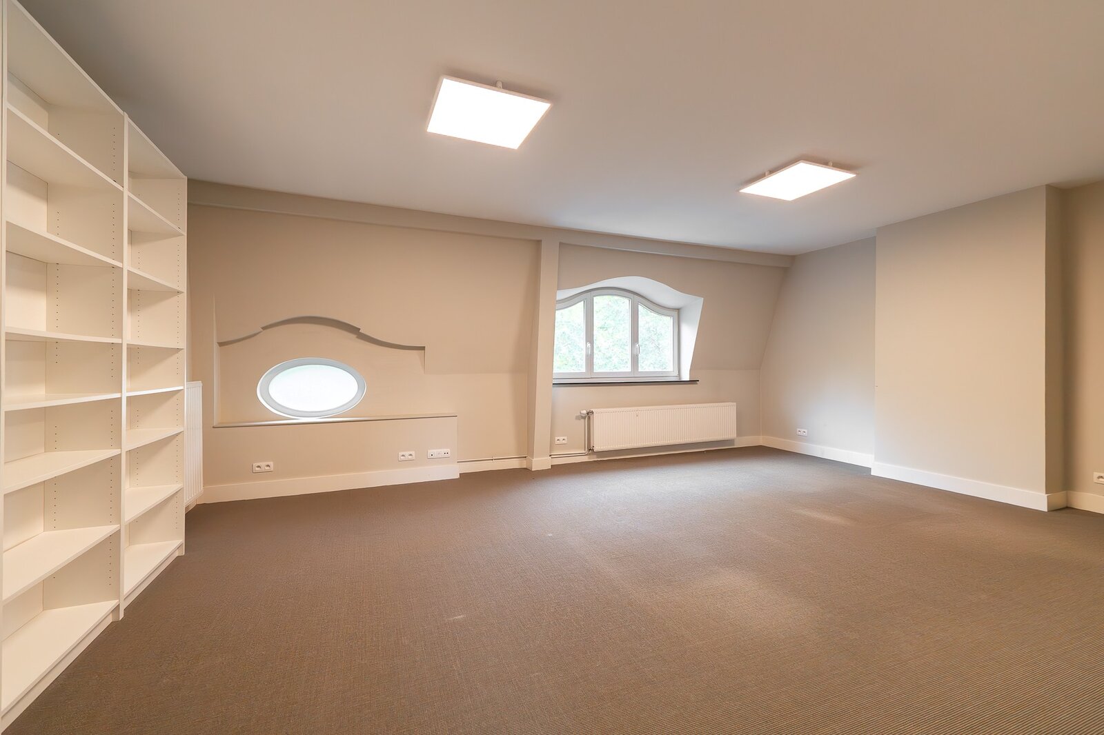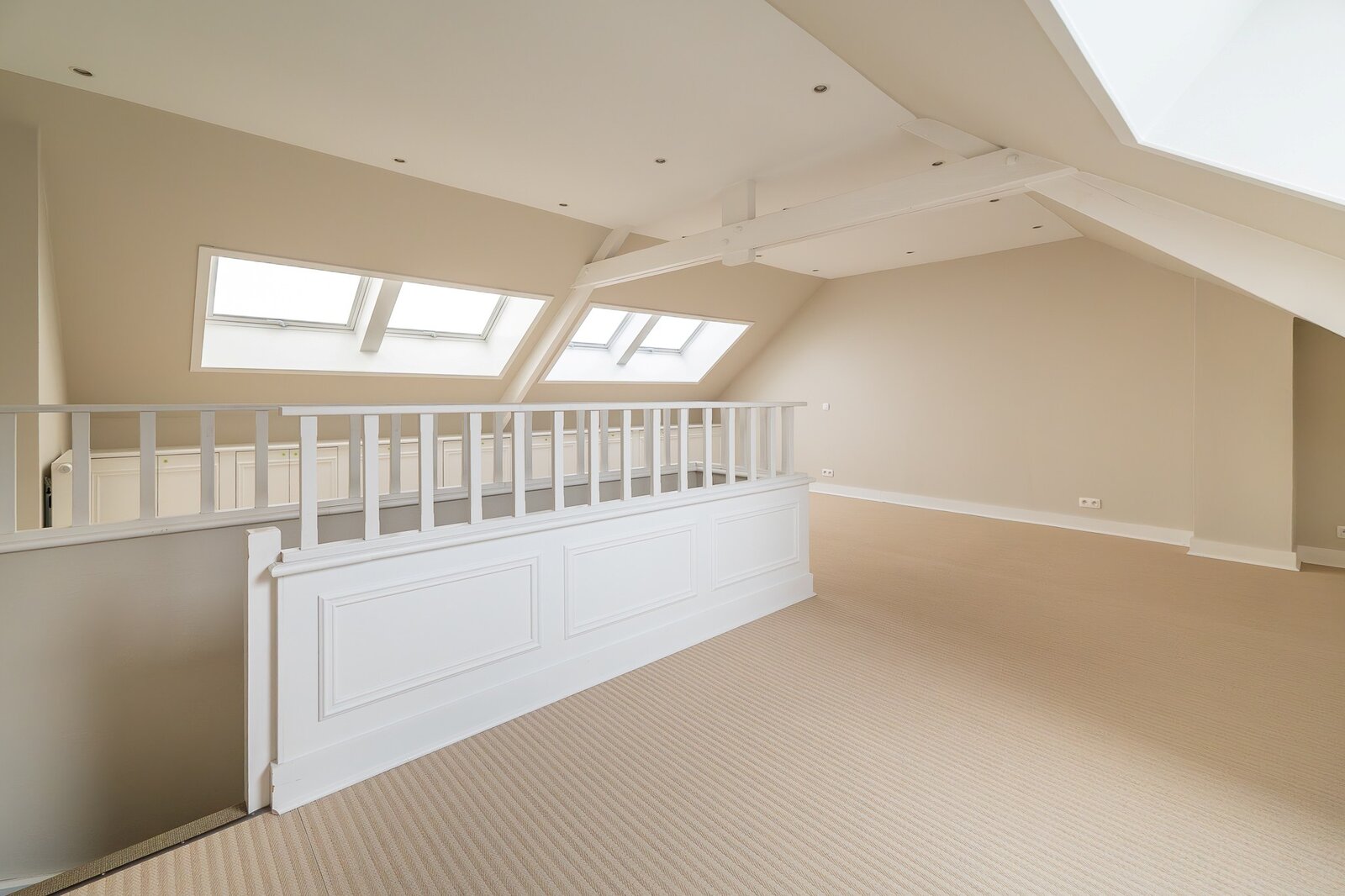 De lichtrijke zolderverdieping biedt een flexibele ruimte die ingericht kan worden als speelkamer, thuisbioscoop of een bijkomende slaapkamer met mogelijkheid tot het installeren van een badkamer.
