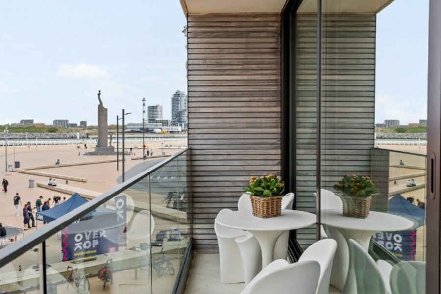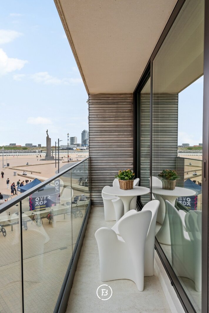 Op de eerste lijn van de Belgische kust, op de iconische Albert I-Promenade bevindt zich dit eigentijdse appartement. Een discrete luxe aan de kustlijn met zeezicht dat permanent de hoofdrol speelt.