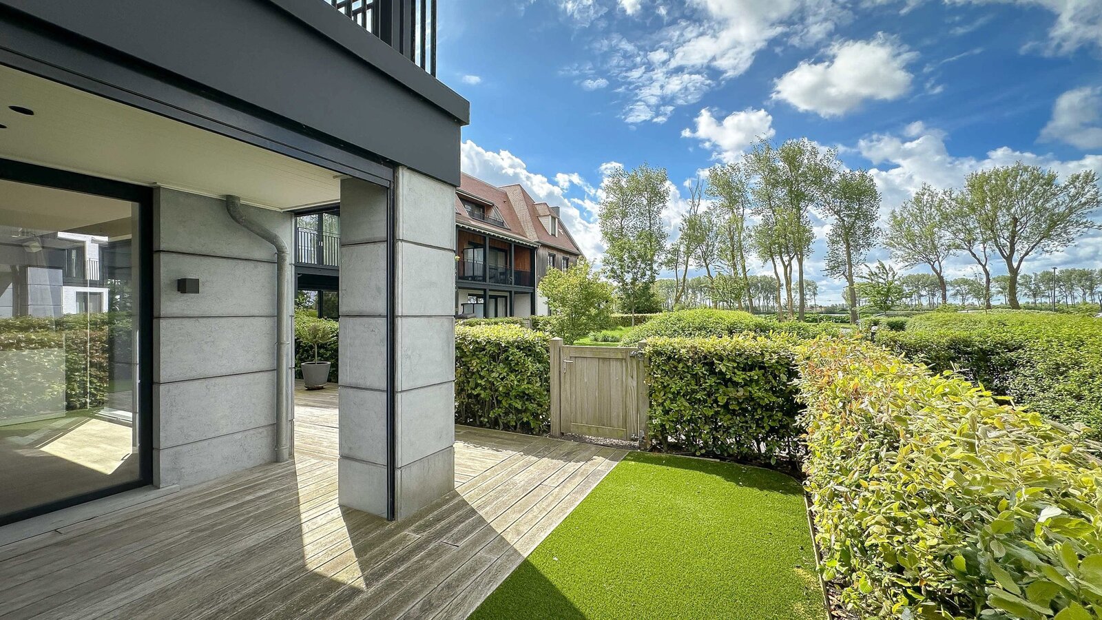 Gelijkvloers HOEKAPPARTEMENT (104m²) met zonnig terras en uitzicht op het meer van DUINENWATER...
