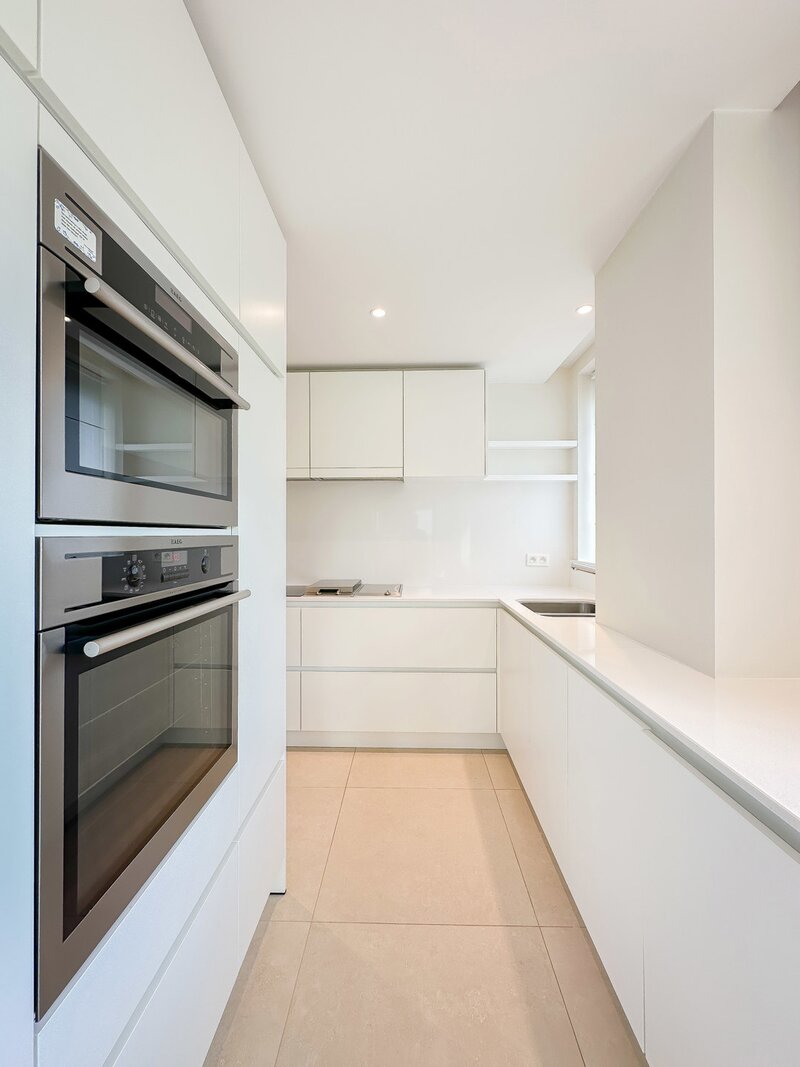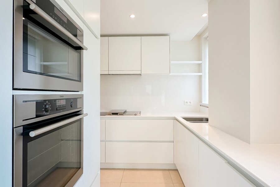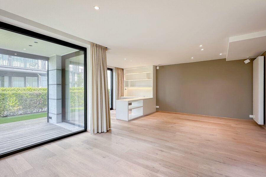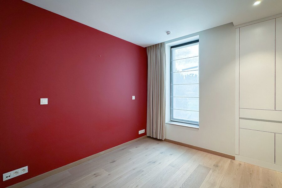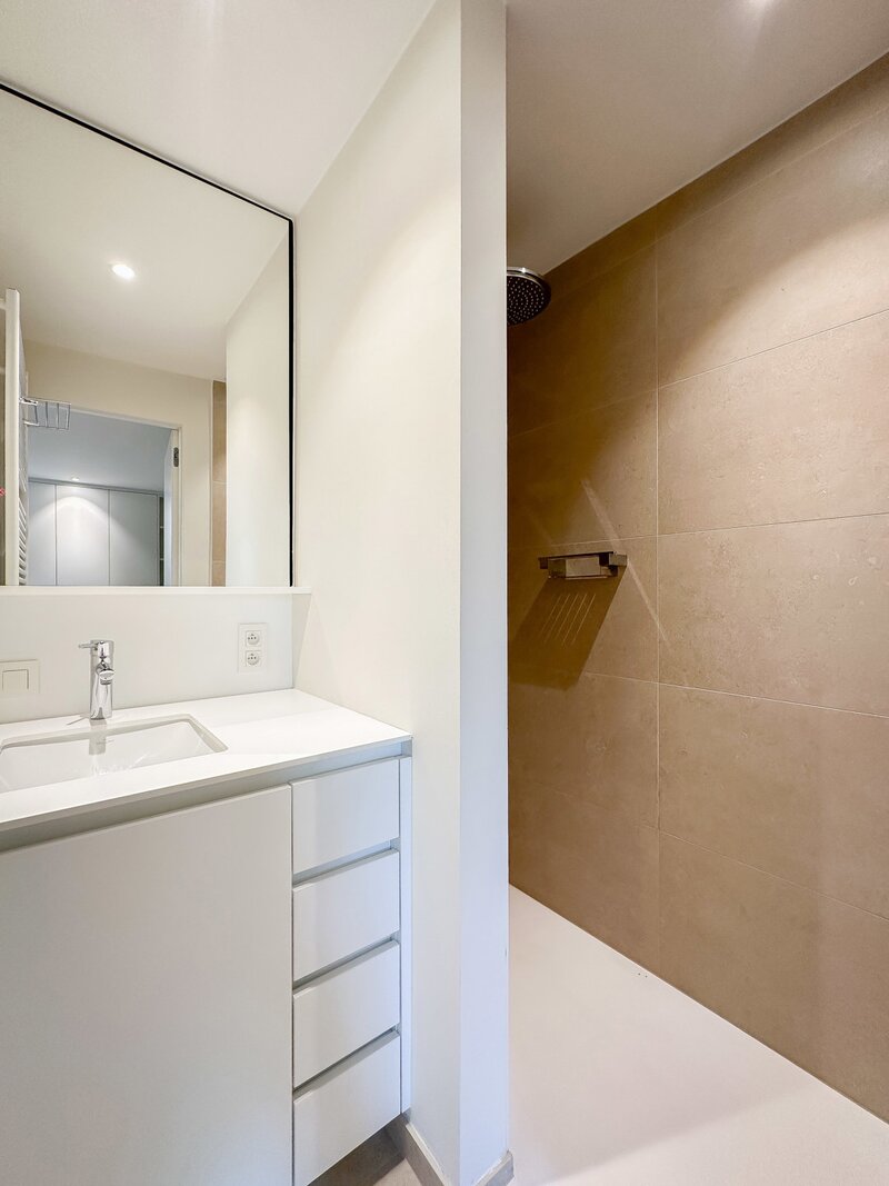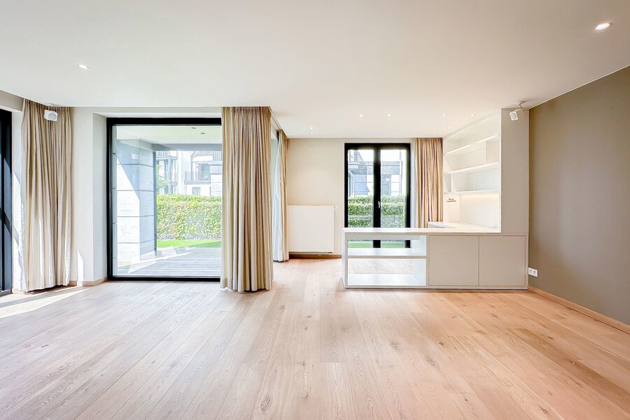 Achteraan bevinden zich 2 volwaardige slaapkamers. De master bedroom beschikt over een eigen dressingruimte en een luxueus ingerichte badkamer met ruime douche en dubbele lavabo. De tweede slaapkamer beschikt eveneens over tal van ingemaakte kasten en een douchekamer met ruime douche en lavabo.
