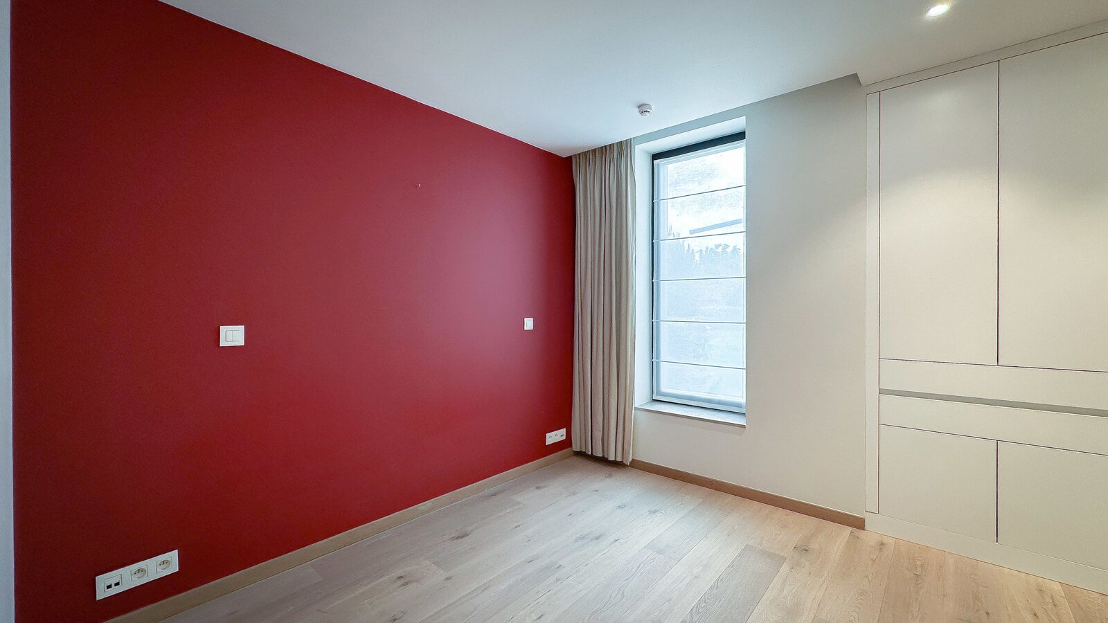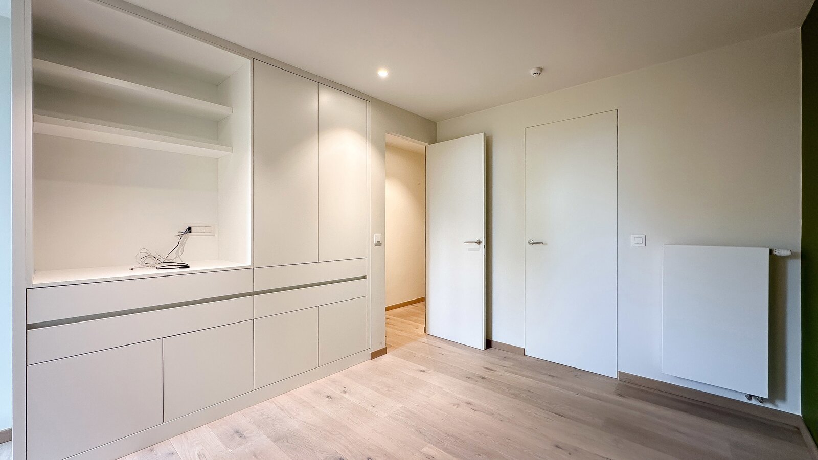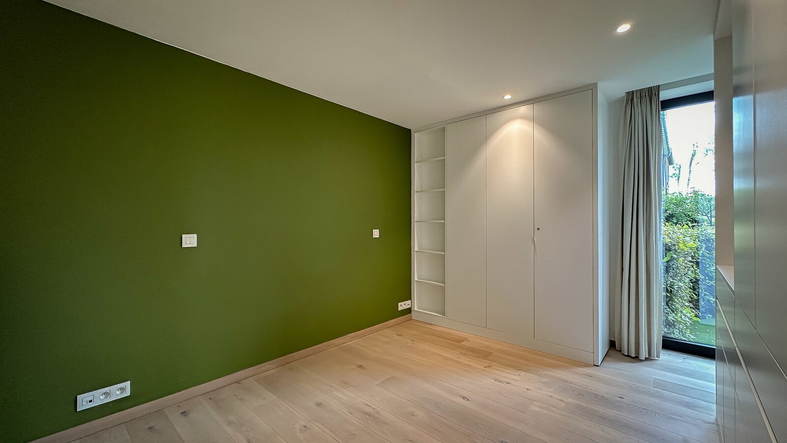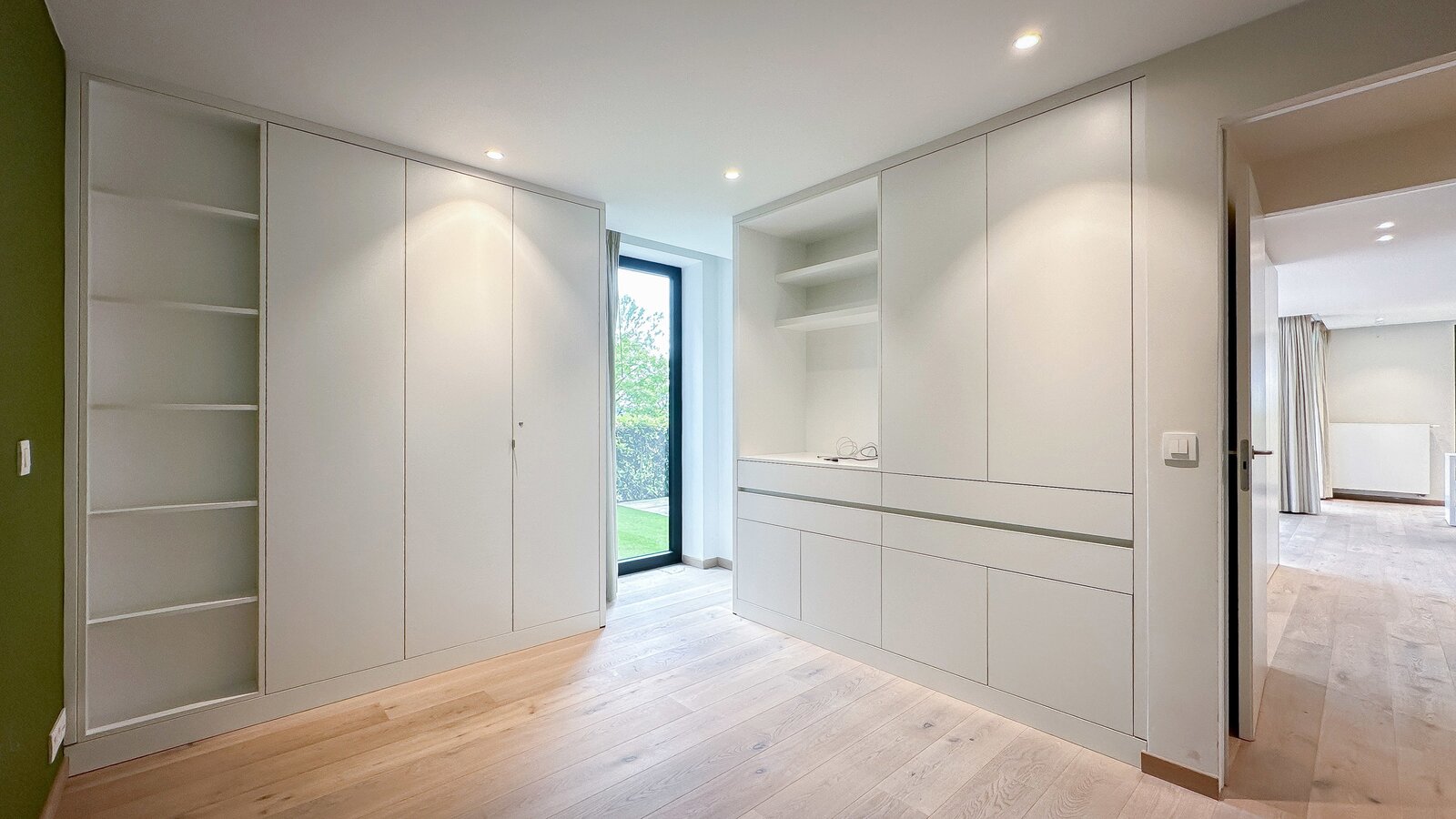 Achteraan bevinden zich 2 volwaardige slaapkamers. De master bedroom beschikt over een eigen dressingruimte en een luxueus ingerichte badkamer met ruime douche en dubbele lavabo. De tweede slaapkamer beschikt eveneens over tal van ingemaakte kasten en een douchekamer met ruime douche en lavabo.