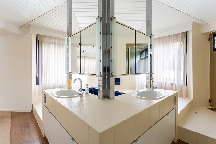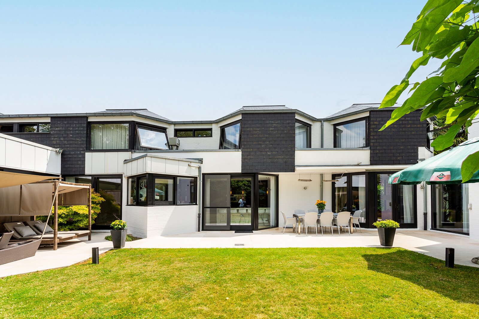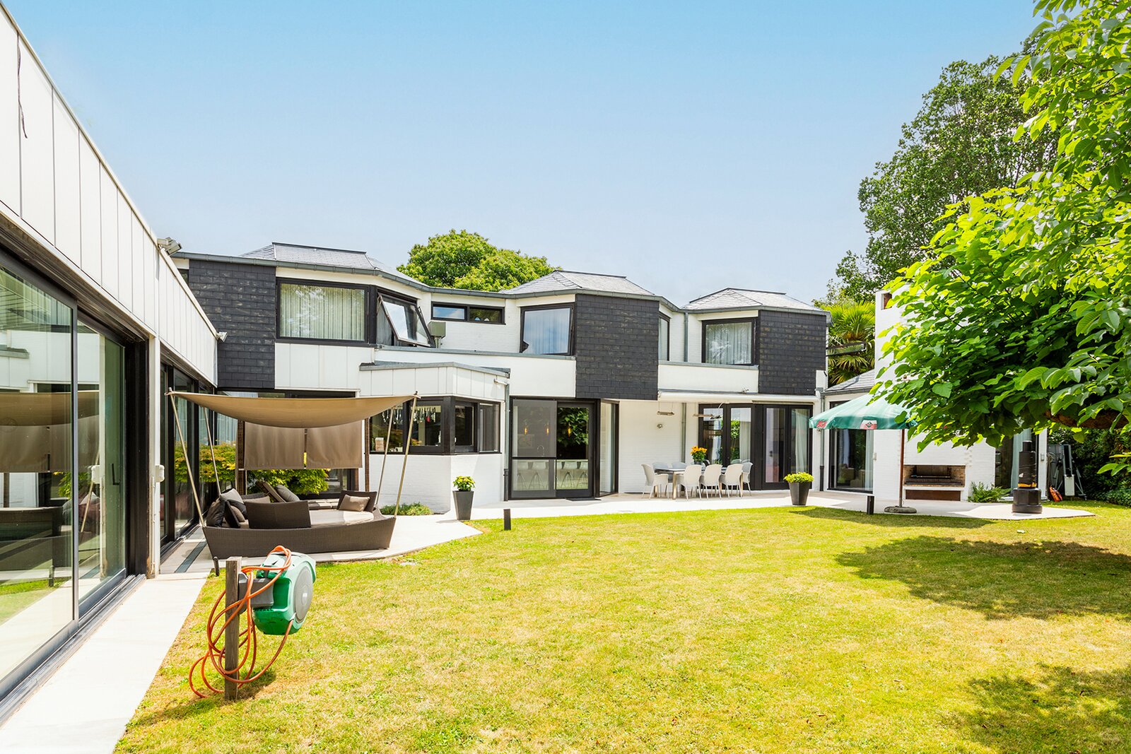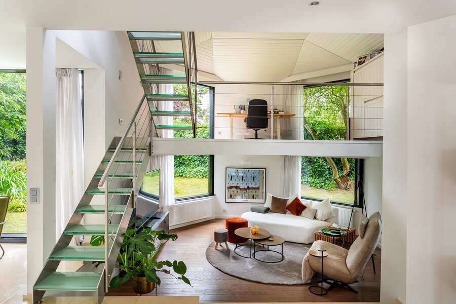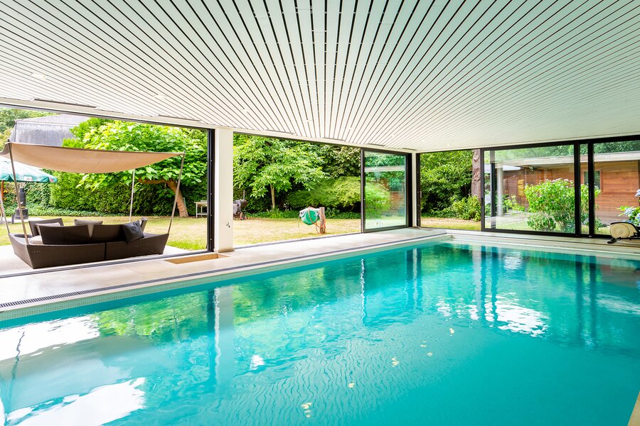 Topgelegen architectenwoning met ruim tuin en binnenzwembad.