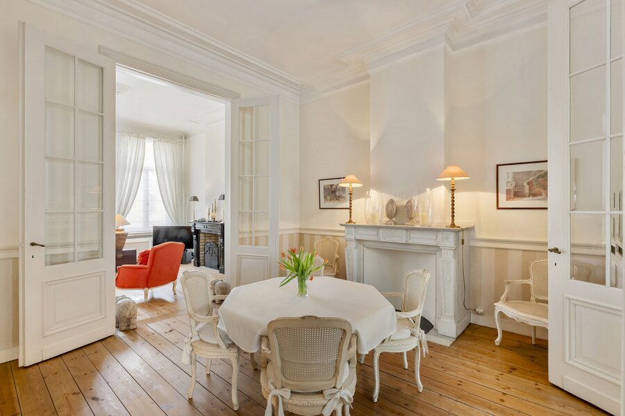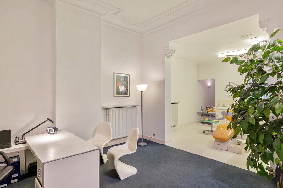 Met een bewoonbare oppervlakte van ca. 400 m² biedt dit herenhuis tal van mogelijkheden. Op het gelijkvloers bevindt zich een voormalige tandartspraktijk, ideaal voor een combinatie van wonen en werken of voor een vrij beroep.