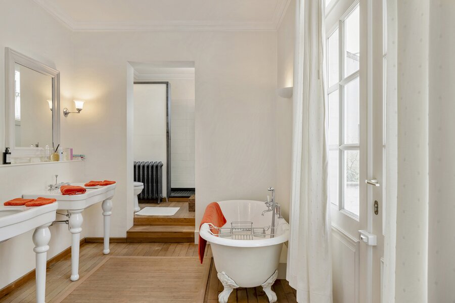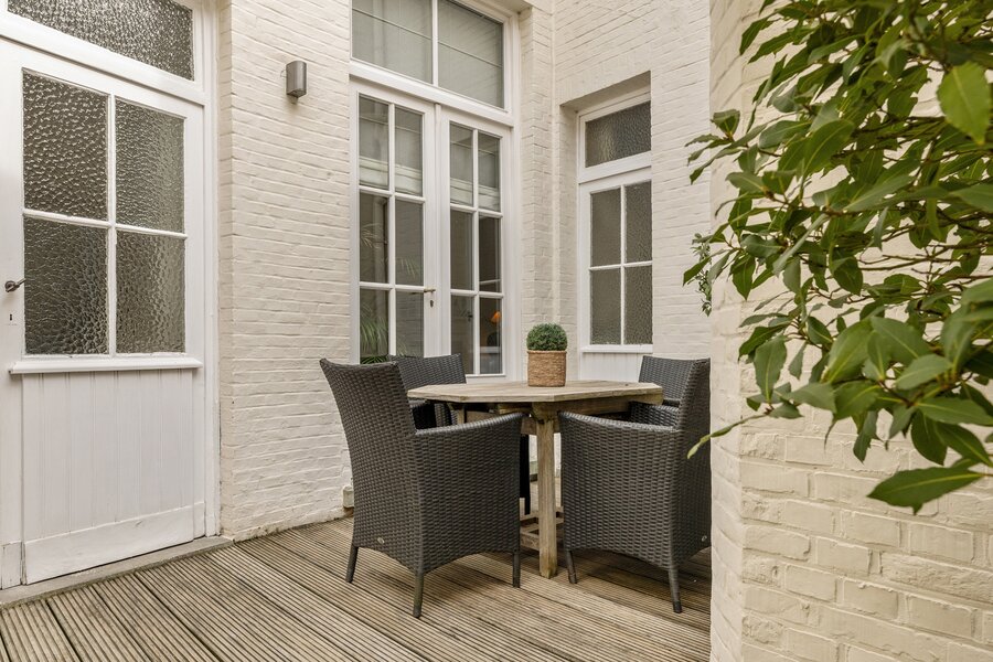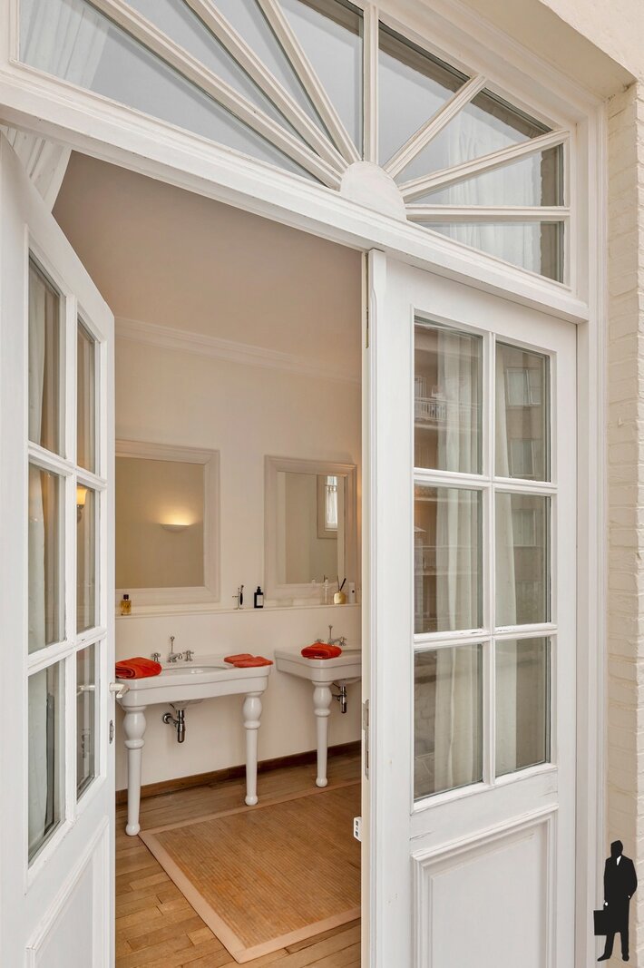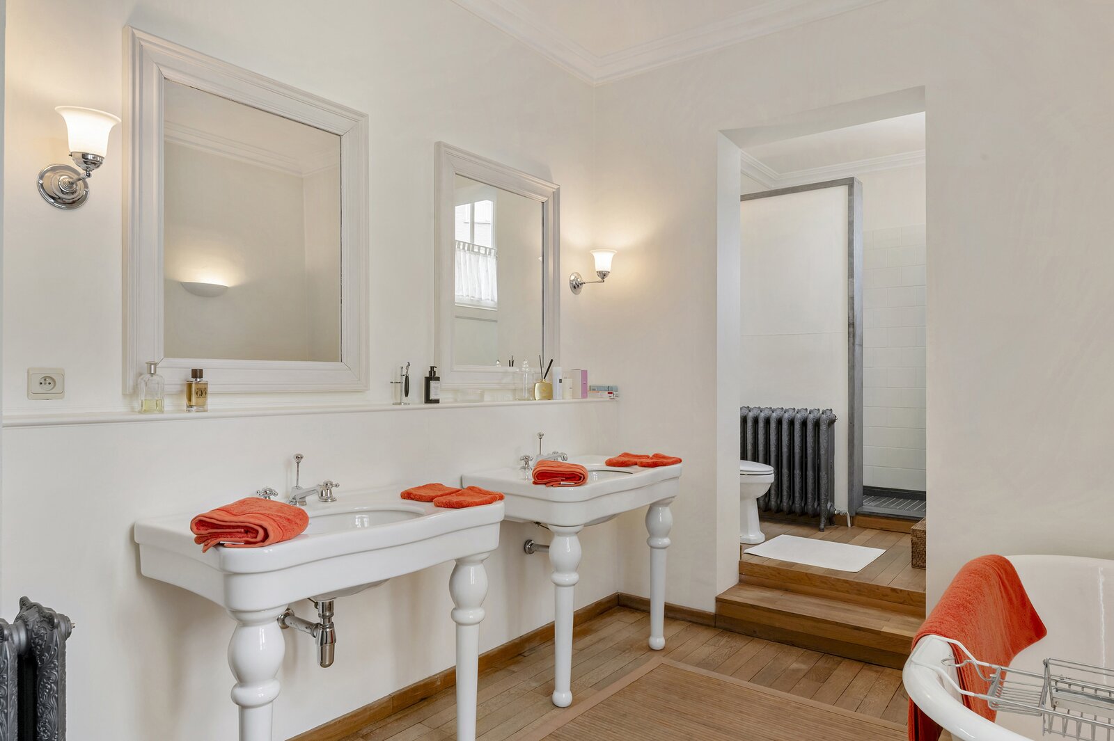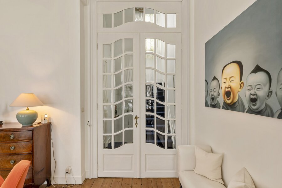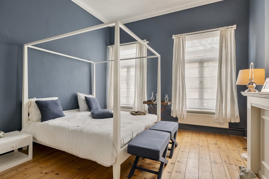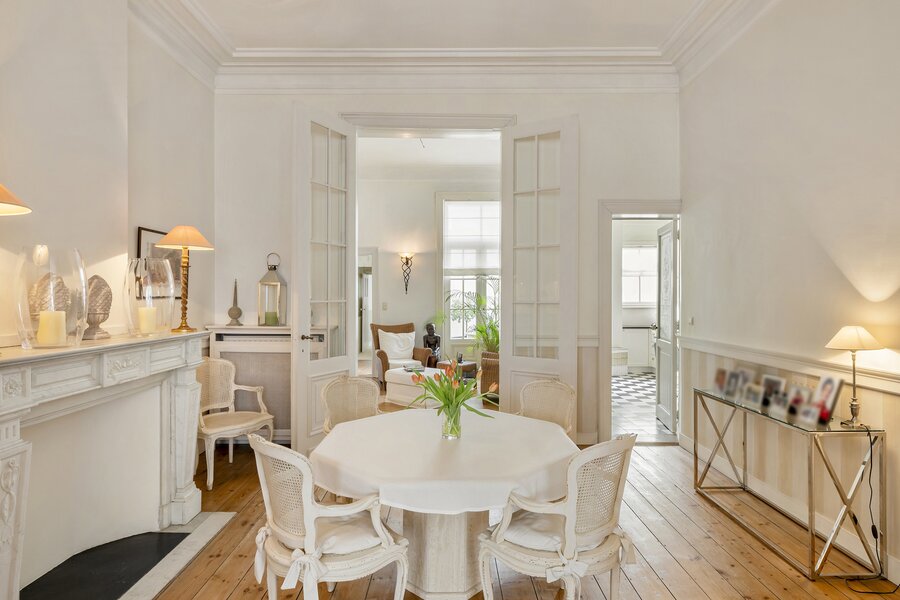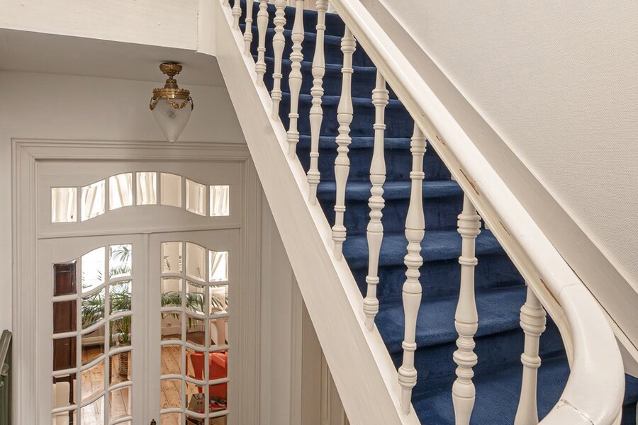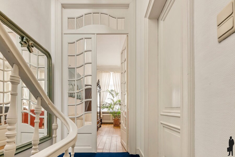 De imposante, statige gevel straalt klasse en authenticiteit uit en zet meteen de toon voor dit unieke eigendom.
