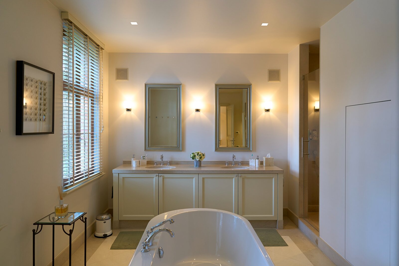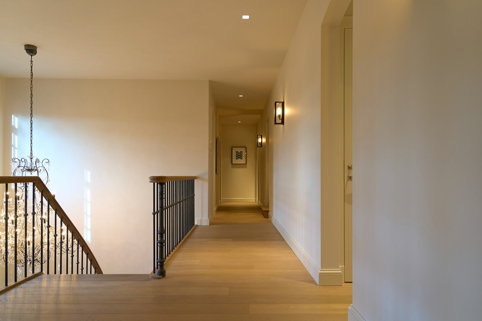 Indeling eerste verdieping: overloop met eiken planken, via een prachtige ruime dressing toegang tot de ouderslaapkamer met open haard, en tevens verbonden met ruime luxe badkamer. tweede ruime slaapkamer met ingemaakte kasten met een douchekamer. derde en vierde ruime slaapkamer met ingemaakte kasten. Via nachthal toegang tot derde badkamer, apart toilet, Alle badkamers luxueus afgewerkt in hoogwaardige marmer. Linnenkamer/ waskamer op natuurstenen vloer. Slaapkamers en nachthaal voorzien van mooie eiken vloeren 17 cm breedte . Hoogte plafond 280 cm, hoogte deuren 211,5 cm.