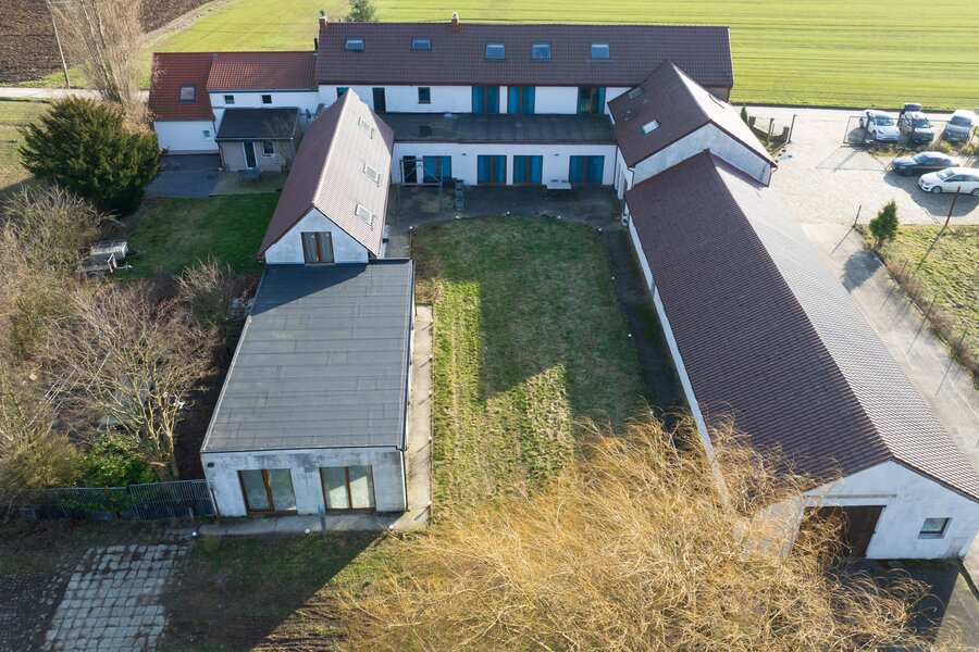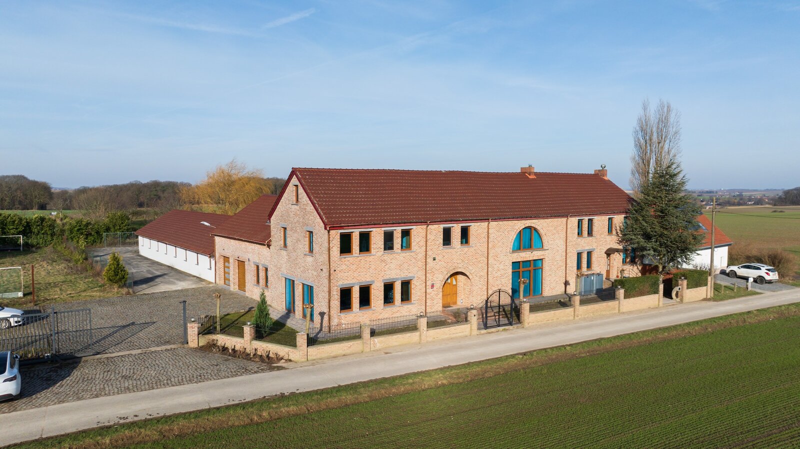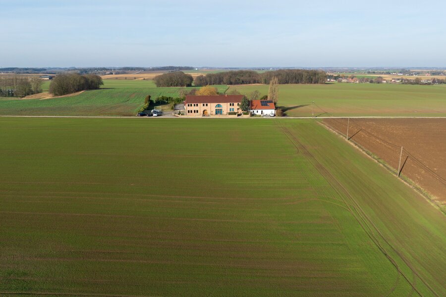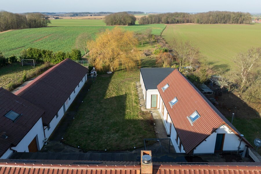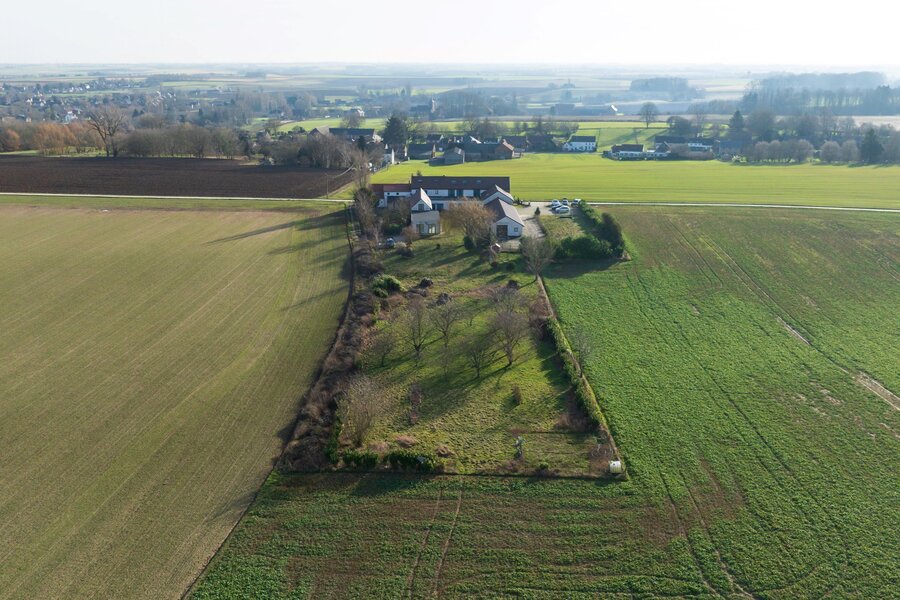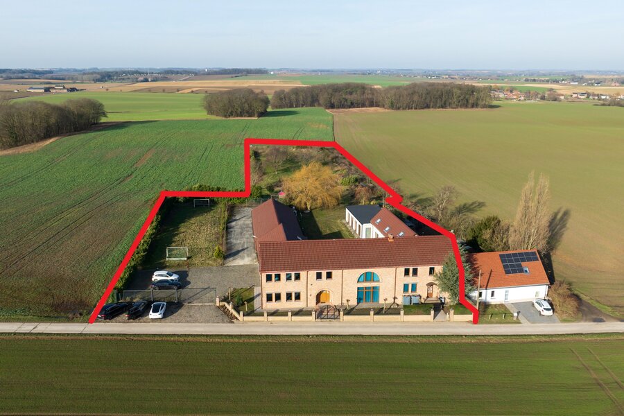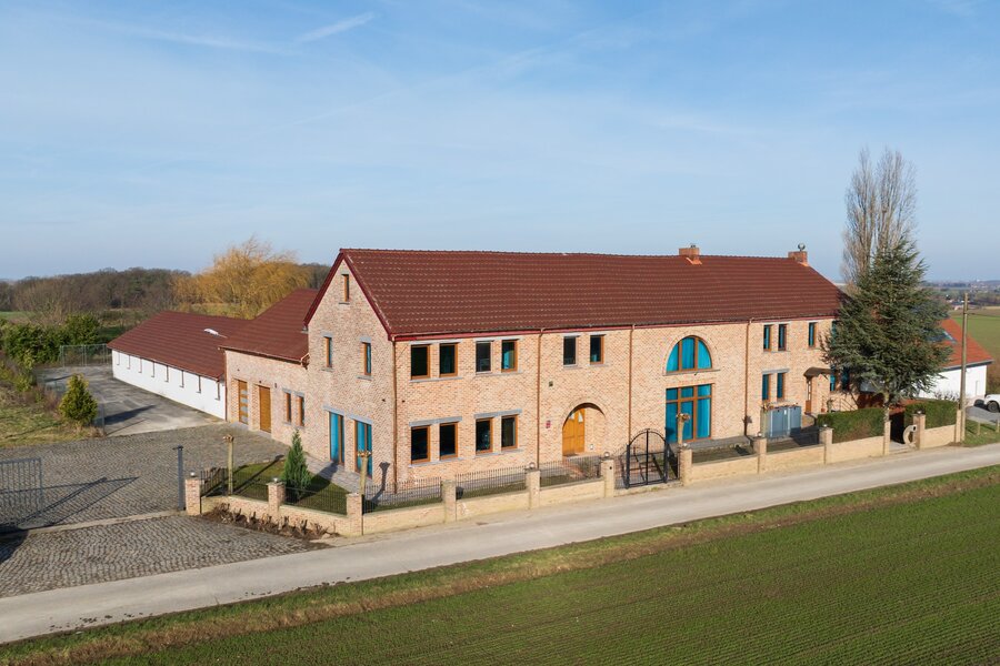 Te midden van de velden, op een schilderachtige locatie, bevindt zich dit buitengewone pand. Aan de straatzijde en de rechtervleugel bevinden zich momenteel de bewoonde ruimten.