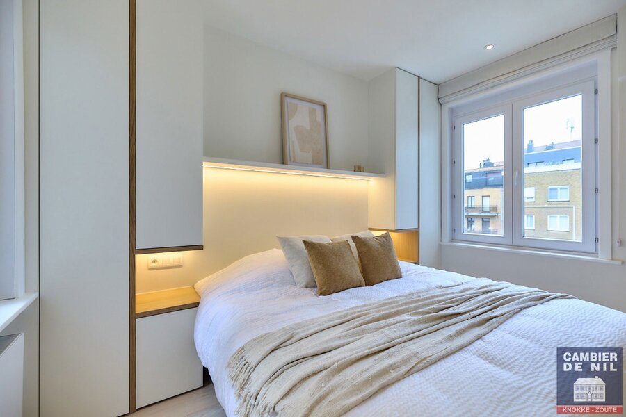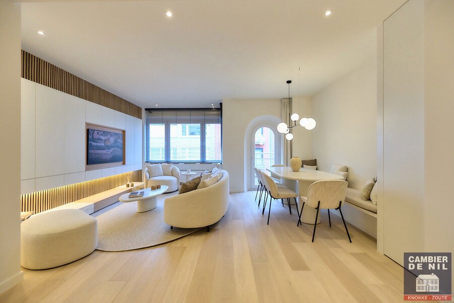 Ontdek een prachtig gerenoveerd woonappartement met vier slaapkamers, ideaal gelegen in het hart van Knokke, nabij de Dumortierlaan, met zijdelings zeezicht.