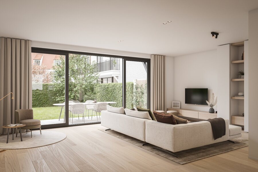 Prachtige woning in Zoute Schorre met zuid gerichte tuin en ruim terras, totale bew. opp. is 404 m² inclusief ondergrondse garage.