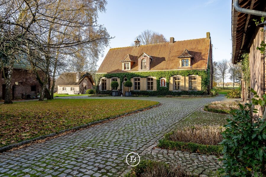 Deze U-vormige hoeve, gelegen op een ruim perceel van 5 hectare, geniet een centrale ligging tussen Kortrijk, Roeselare en Ieper. In 2010 werd de hoeve volledig gerenoveerd tot het exclusieve landhuis dat het vandaag is. Bij aankomst leidt een charmante oprijlaan naar het centraal gelegen binnenplein, dat de perfecte entree vormt tot dit prachtige domein.