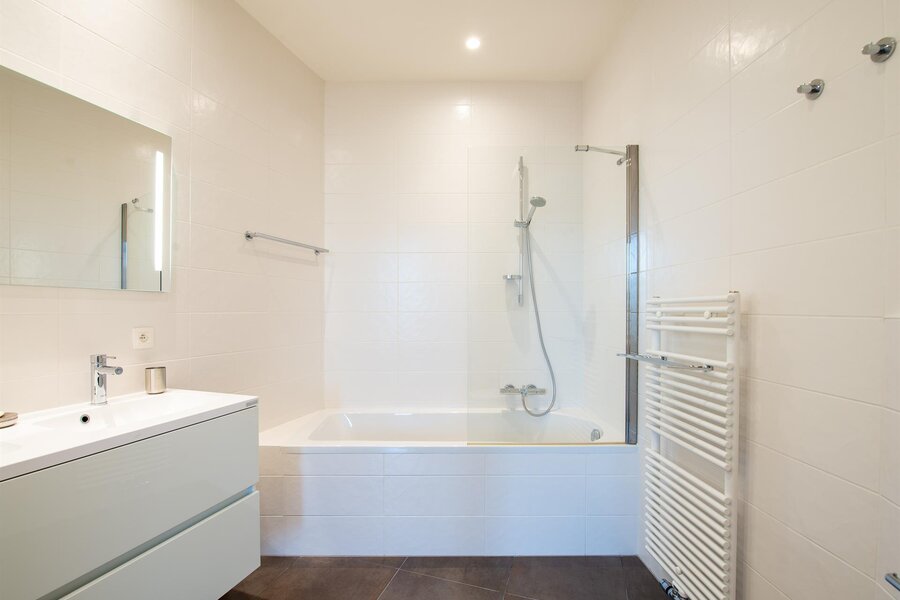 Dit appartement werd gebouwd in 2016 en is afgewerkt met een hoogwaardige kwaliteit. Het geeft uit op een inkomhal met dubbele vestiaire en gastentoilet. Het woongedeelte bestaat uit een grote zit/eetkamer, een volledig uitgeruste keuken (Siematic) en een terras op het zuidwesten. Het nachtgedeelte geeft toegang tot een hal met ingebouwde kasten, de ouderslaapkamer en een doucheruimte. Een tweede slaapkamer met eigen badkamer, een studeerkamer of een derde slaapkamer maken het geheel compleet. Een wasruimte kan worden omgebouwd tot doucheruimte.
