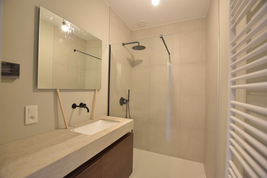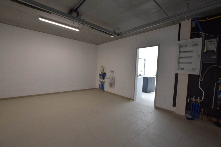 Indeling: inkomhal met gastentoilet en een handige vestiaire. De ruime en open leefruimte biedt plaats aan een moderne keuken voorzien van alle toestellen en aansluitend vind je een berging en de garage.