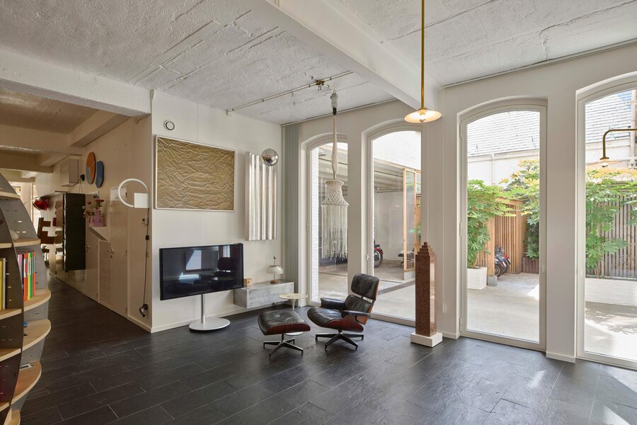 In een charmante, verkeersluwe straat tussen het Eilandje en het historische centrum van Antwerpen, bevindt zich deze buitengewone loft van ca. 220 m². Een unieke ruimte waar wonen, creëren en professioneel werken samenkomen in een indrukwekkende architecturale setting. Dit zeldzame pand maakt deel uit van het bekroonde Beyenkorf-loftproject, en werd in 2008 volledig hertekend door het gerenommeerde BULK architectenbureau – een persoonlijke vriend van de eigenaar, die volledige carte blanche kreeg. In 2020 volgde een verfijnde update.