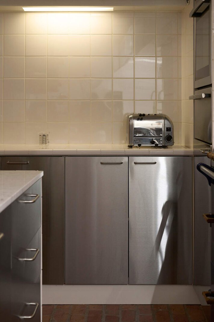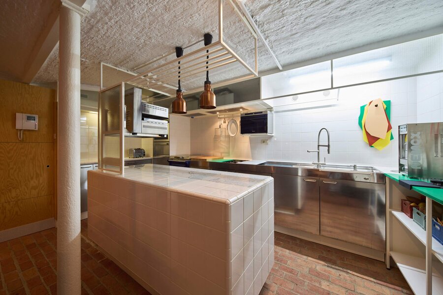 Het souterrain is indrukwekkend: originele gewelven, gietijzeren kolommen en een gastronomische keuken die elke fijnproever blij maakt. Met een Everhot 60-fornuis met kookplaat en 2 ovens, een teppanyaki, 2 gaspitten en 2 inductievuren, een stoomoven en een bordenwarmer is dit het kloppend hart van de loft. Een gastentoilet, extra spoelruimte en bergruimte maken het geheel af.