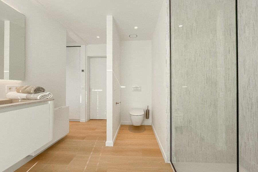 De masterbedroom beschikt over ingemaakte kasten, een en-suite douchekamer en een apart toilet. Ook hier geniet u van een prachtig uitzicht op zee. Verder zijn er twee volwaardige slaapkamers, een aparte douchekamer en een gastentoilet op de nachthal.