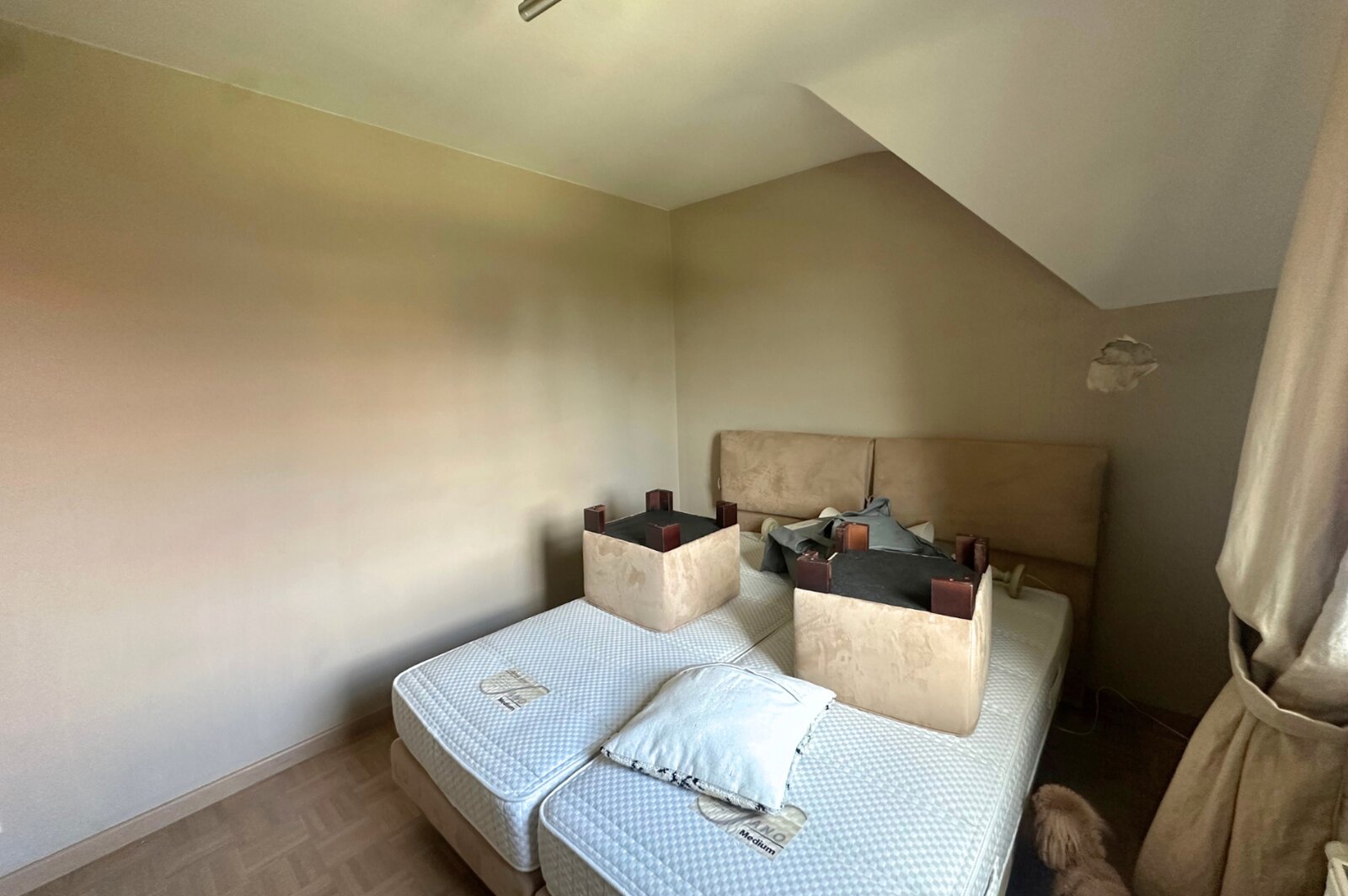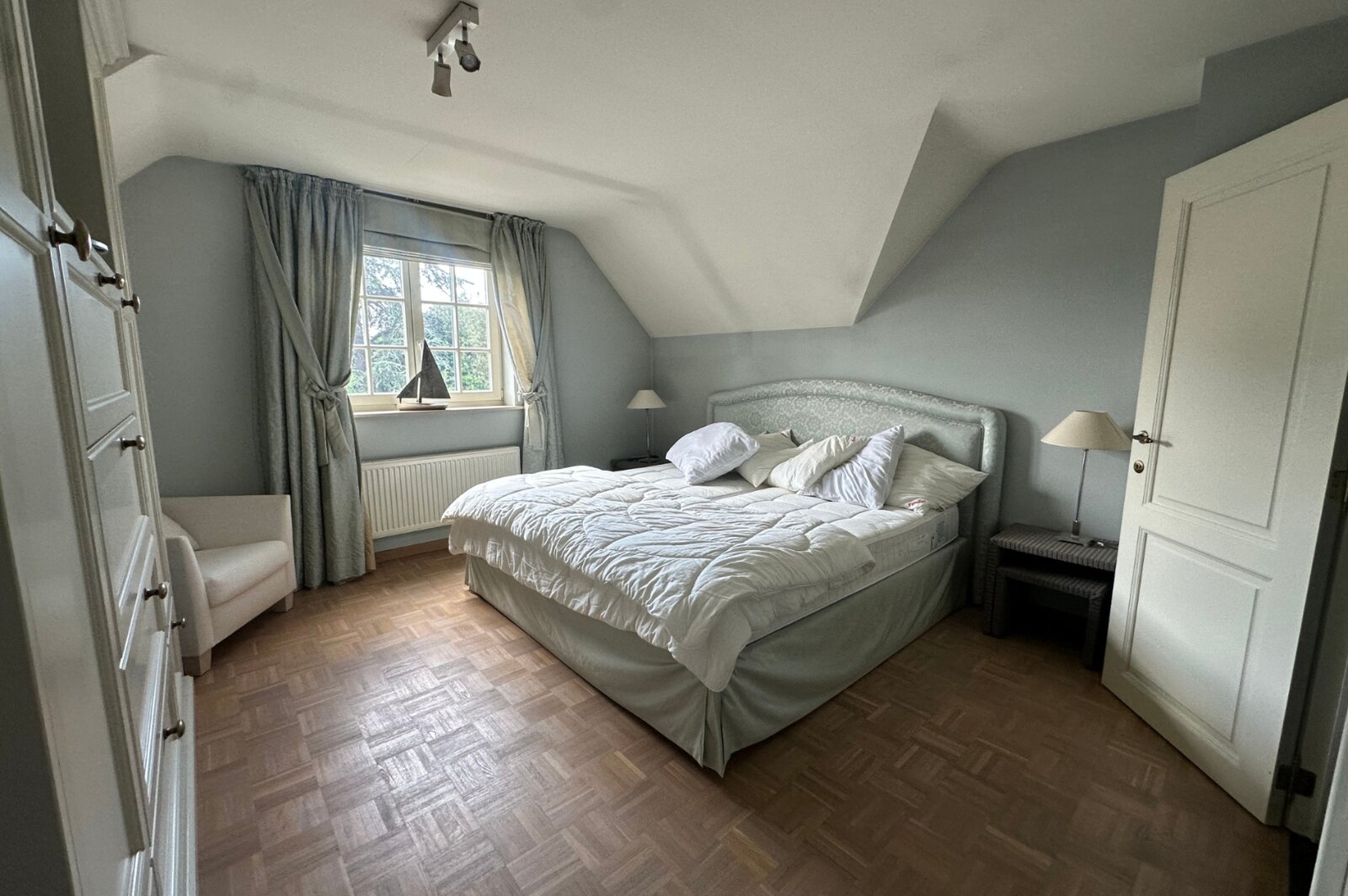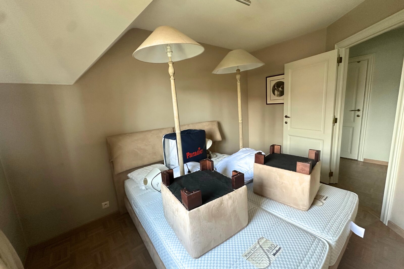 Inkomhall met aparte WC en vestiaire. Lichtrijke leefruimte uitgevend op een terras voor- en achteraan. Volledig geïnstalleerde open keuken. Master bedroom met ingemaakte kasten, badkamer met dubbele lavabo, ligbad en douche. Tweede slaapkamer met dubbel bed. Derde slaapkamer met dubbel bed. Gedeelde badkamer op de nachthal (lavabo, douche). Toilet op de nachthal. Zonnige tuin met twee terrassen.