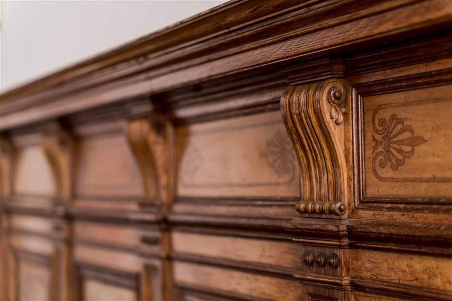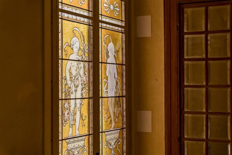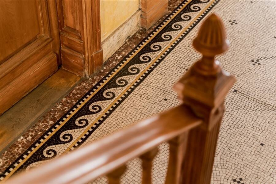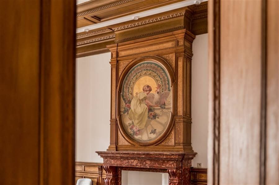 Prachtige gevels - koetspoort - trappenhuis - parketvloeren - zuilen - lijstwerk - houten lambrisering - glas-in-loodramen - schrijnwerk en kozijnen - marmer - open haarden