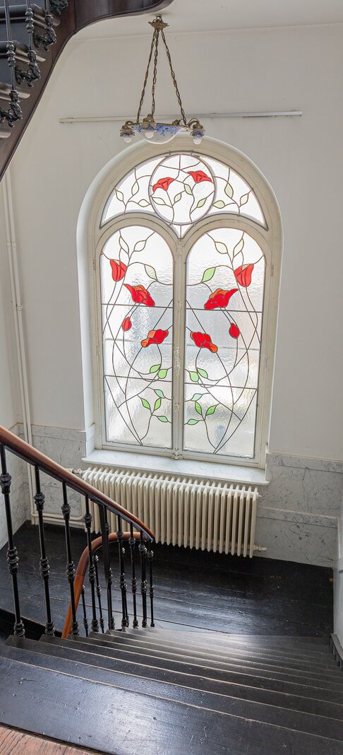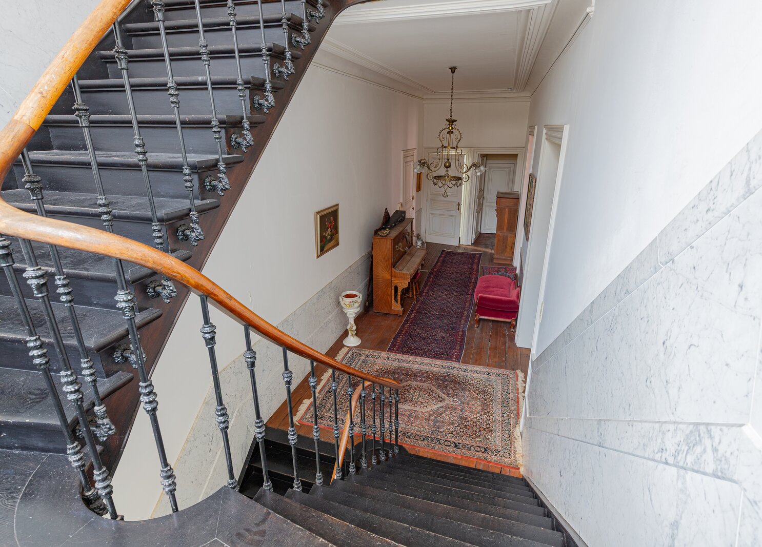 Deze karaktervolle, lichtrijke woning is gelegen op een perceel van 3a73. Binnenin ervaart u pure grandeur met een monumentaal trappenhuis, plafonds tot 4,4m hoog, marmeren haarden op elk verdiep en rijk versierde plafonds begeleiden u door de huidige indeling van onder andere 7 slaapkamers en 4 badkamers.