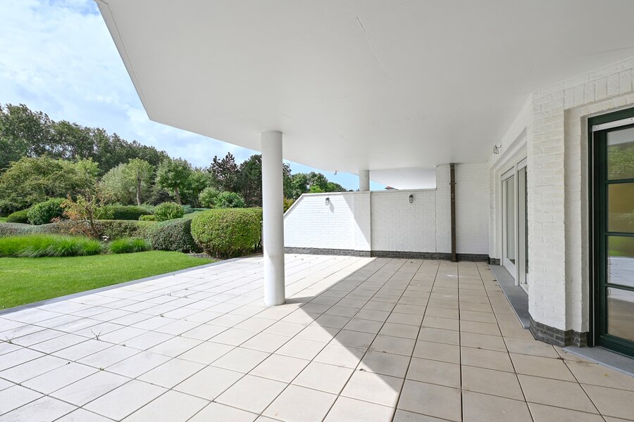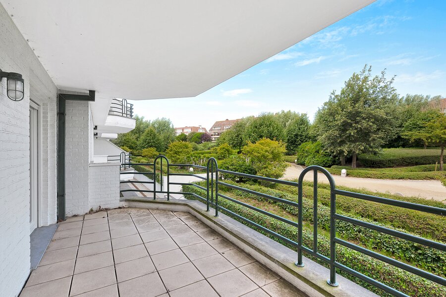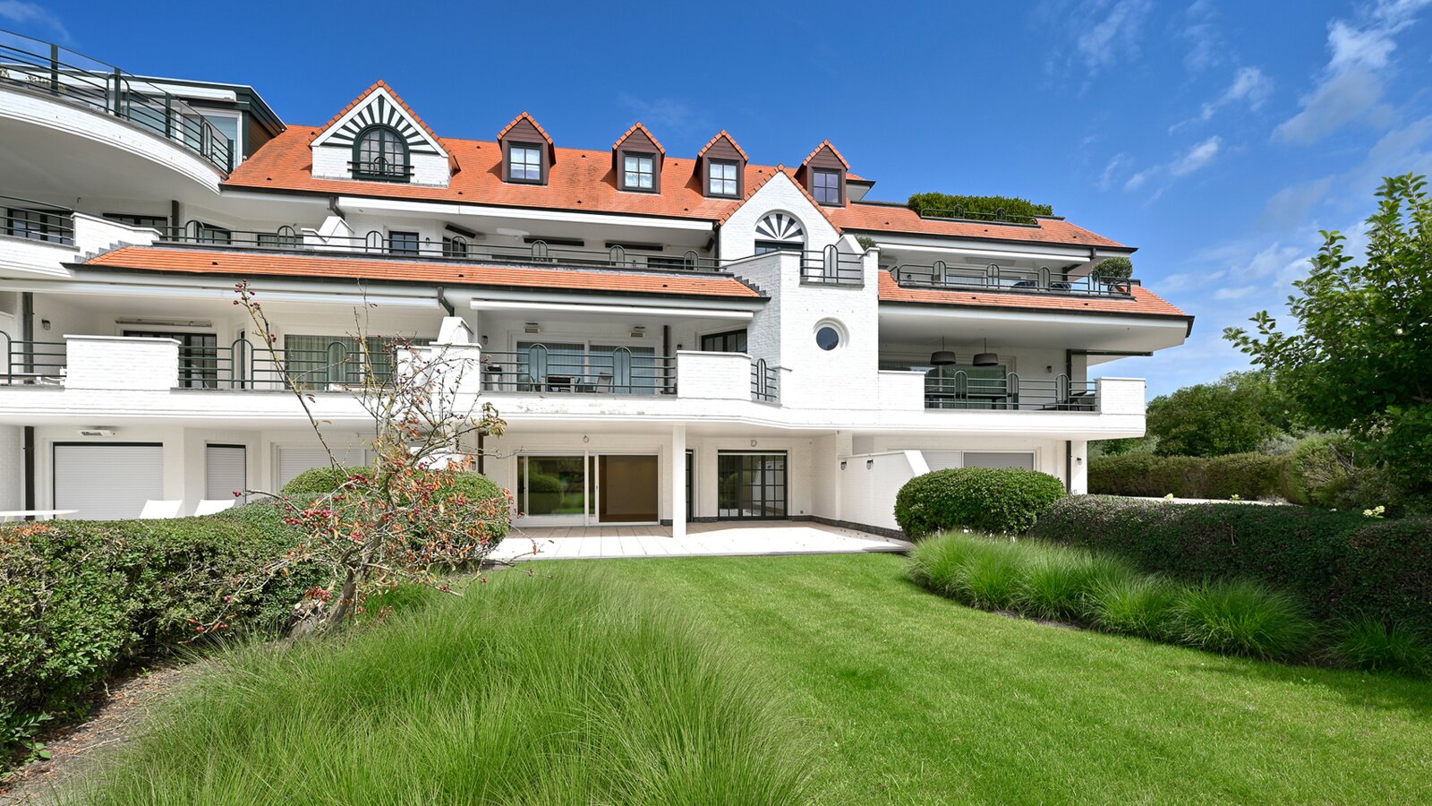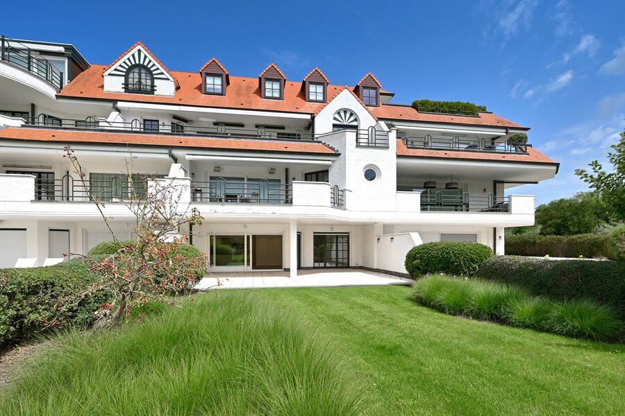 Zeldzaam tuinappartement in een standingvolle residentie in hartje Zoute, in het exclusieve domein "Tennis Gardens", een privé park van +/- 5 ha. Op een zucht van de zee en op wandelafstand van de "Royal Zoute Tennis Club". Het domein beschikt over een overdekt privé verwarmd zwembad uitsluitend toegankelijk voor de bewoners. Indeling: inkom, vestiaire en toilet. Ruime woon- en eetkamer schuifraam openend op groot zuidgericht terras en afgesloten tuin. Open keuken. Berging. 3 slaapkamers met telkens aansluitende bad- of douchekamer. Mogelijkheid tot aankoop van een garage in de kelderverdieping van de residentie. Gemeenschappelijke fietsenberging. Domeinopzichtster: maximale veiligheid et optimale service. De "Brighstone": totaal en luxueus wooncomfort op - zonder twijfel - een der mooiste locaties van het Zoute. Bezoek gaarne na afspraak via een van onze kantoren.