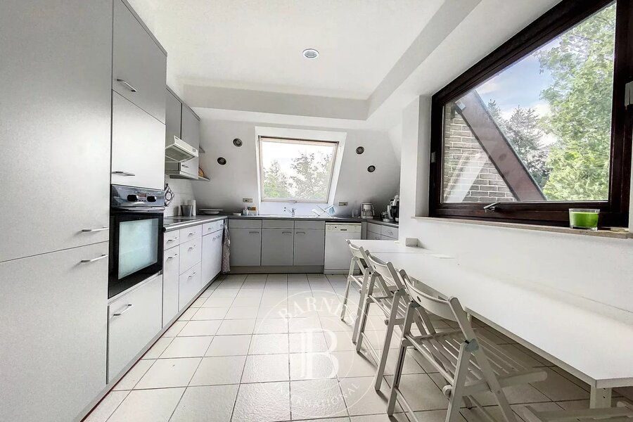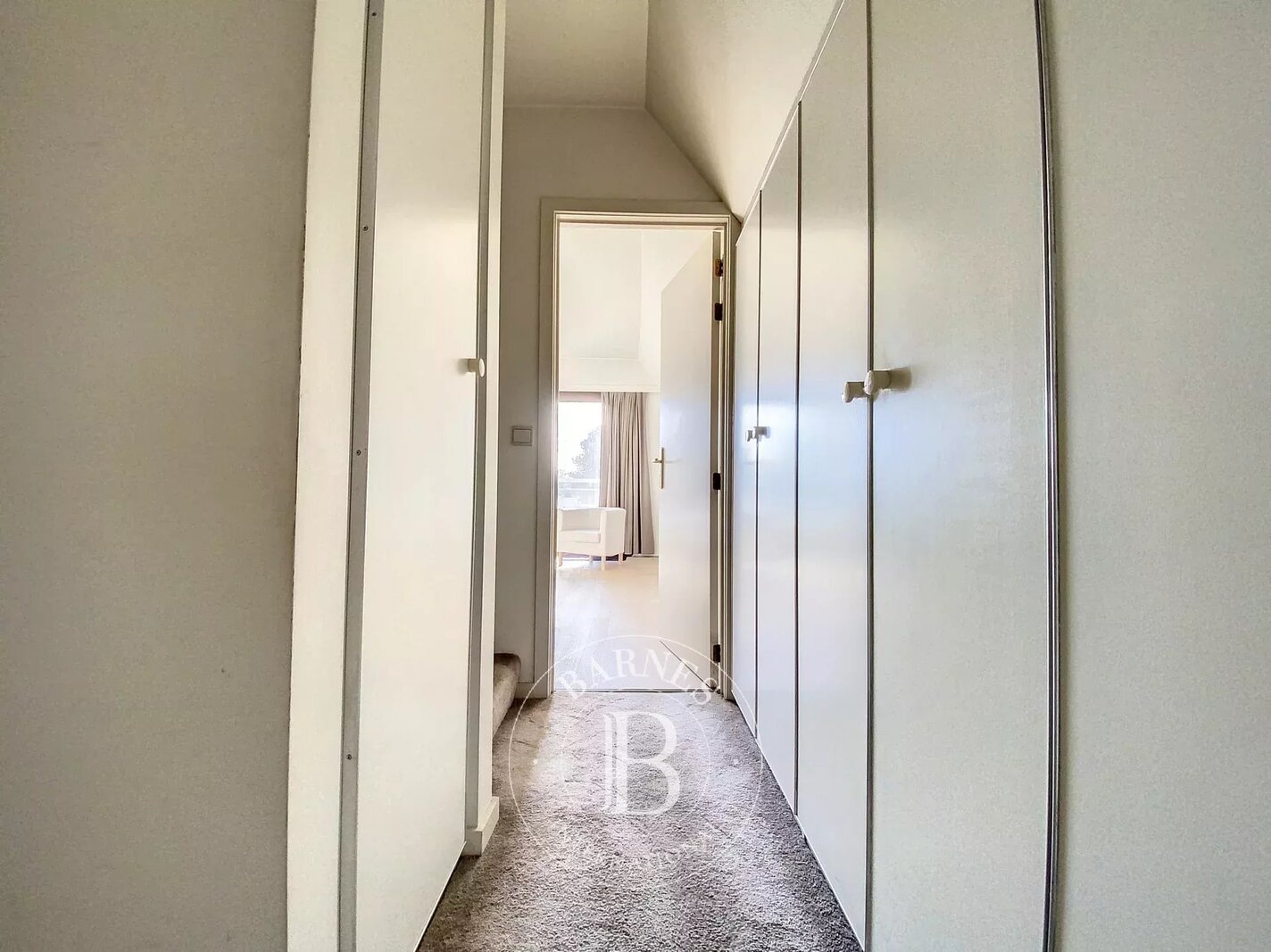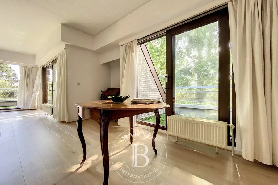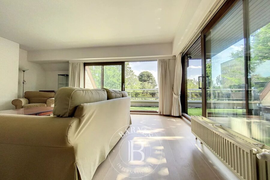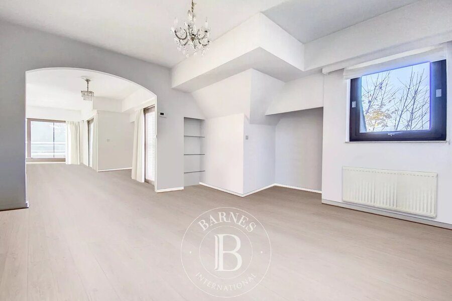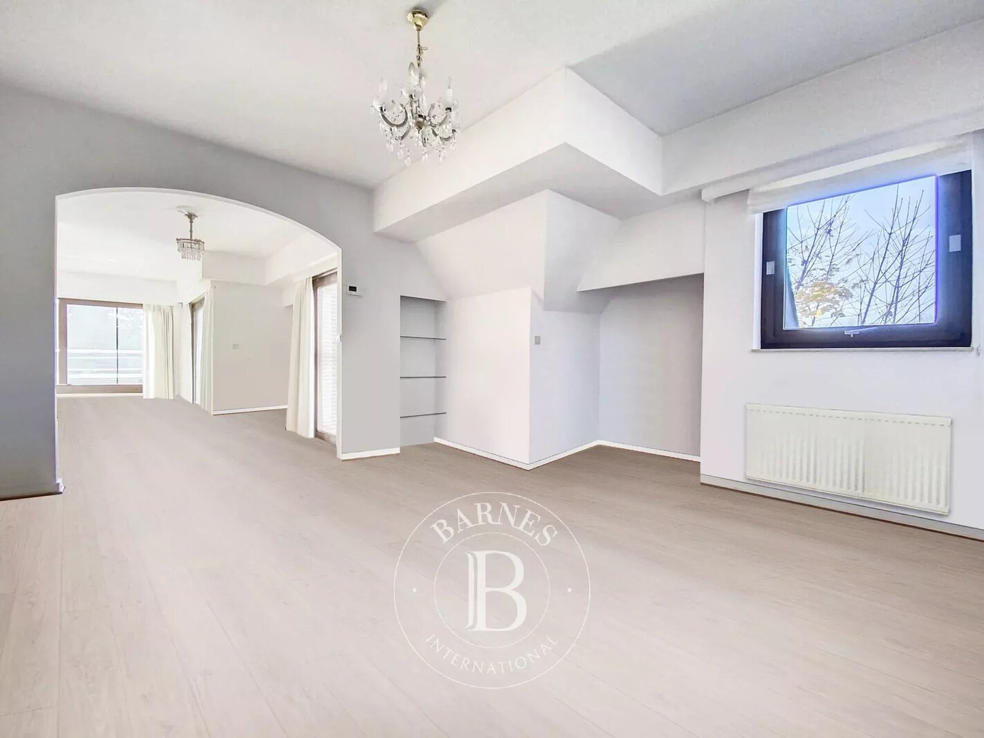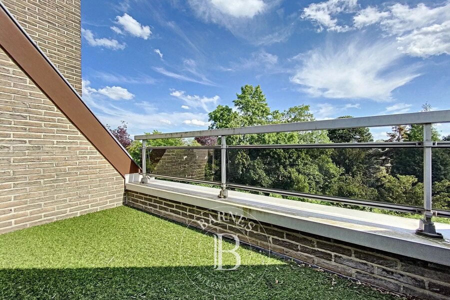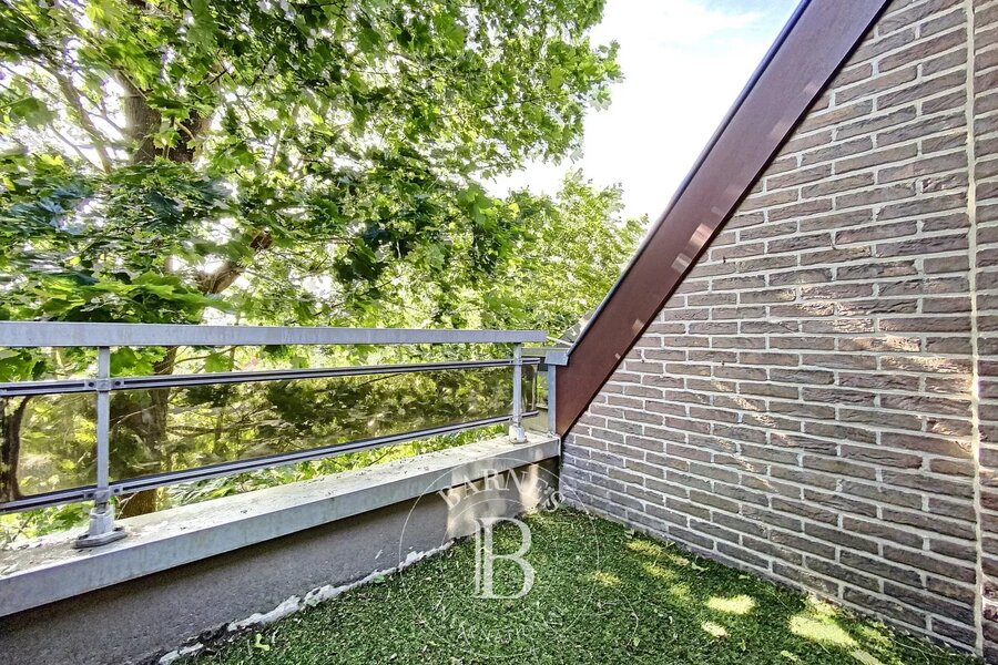 UCCLE / Vert Chasseur. Barnes biedt u deze duplex op de bovenste verdiepingen van een gebouw gelegen in een van de meest gewilde locaties in Ukkel. Het is samengesteld, uit een inkomhal met vestiaire en gastentoilet, een woonkamer van +/- 50 m2 met open haard op gas, die toegang geeft tot een groot terras van +/- 20 m2 op het ZW, een eetkamer, een volledig uitgeruste keuken, een bureau en een wasruimte. Op de eerste verdieping zijn er twee slaapkamers van +/- 20 m2, één met een eigen terras en elk met ingebouwde kasten en een eigen badkamer/douche. Een kelder en een dubbele doos vervolledigen dit eigendom. (50 000 euros). Mogelijkheid voor een 3e slaapkamer en 3e badkamer. PEB D+
