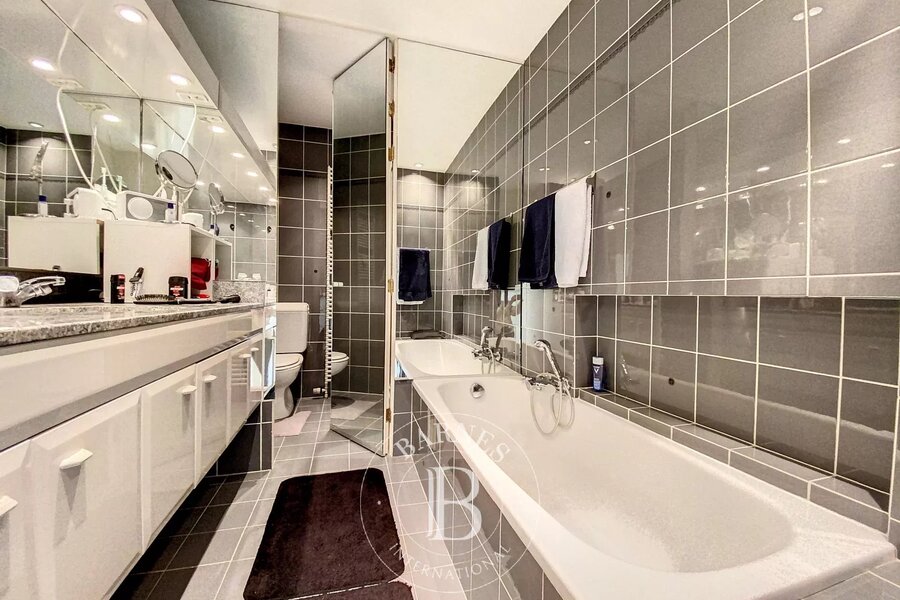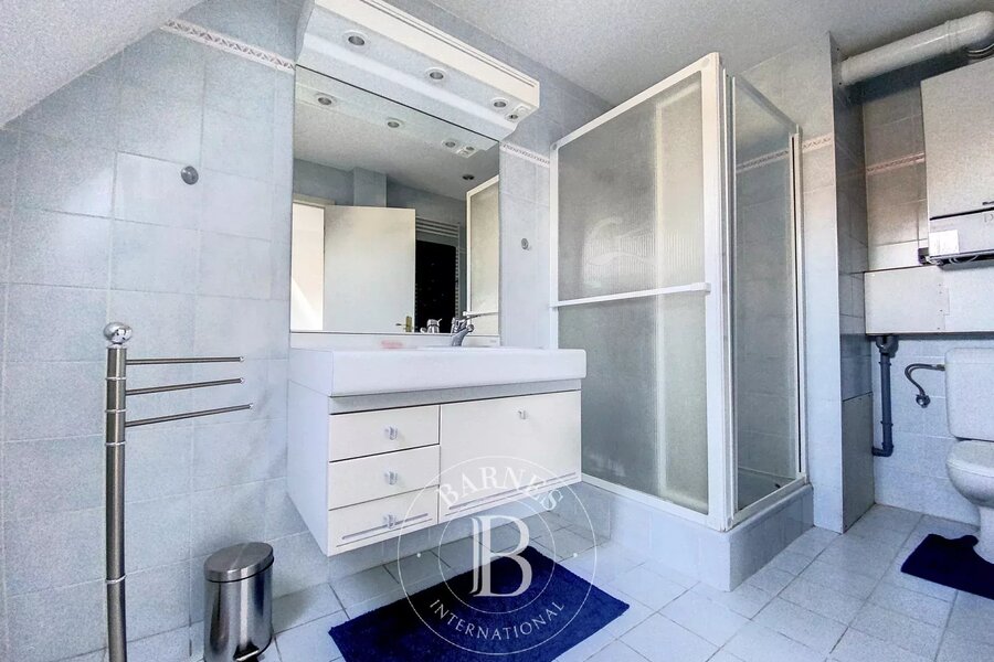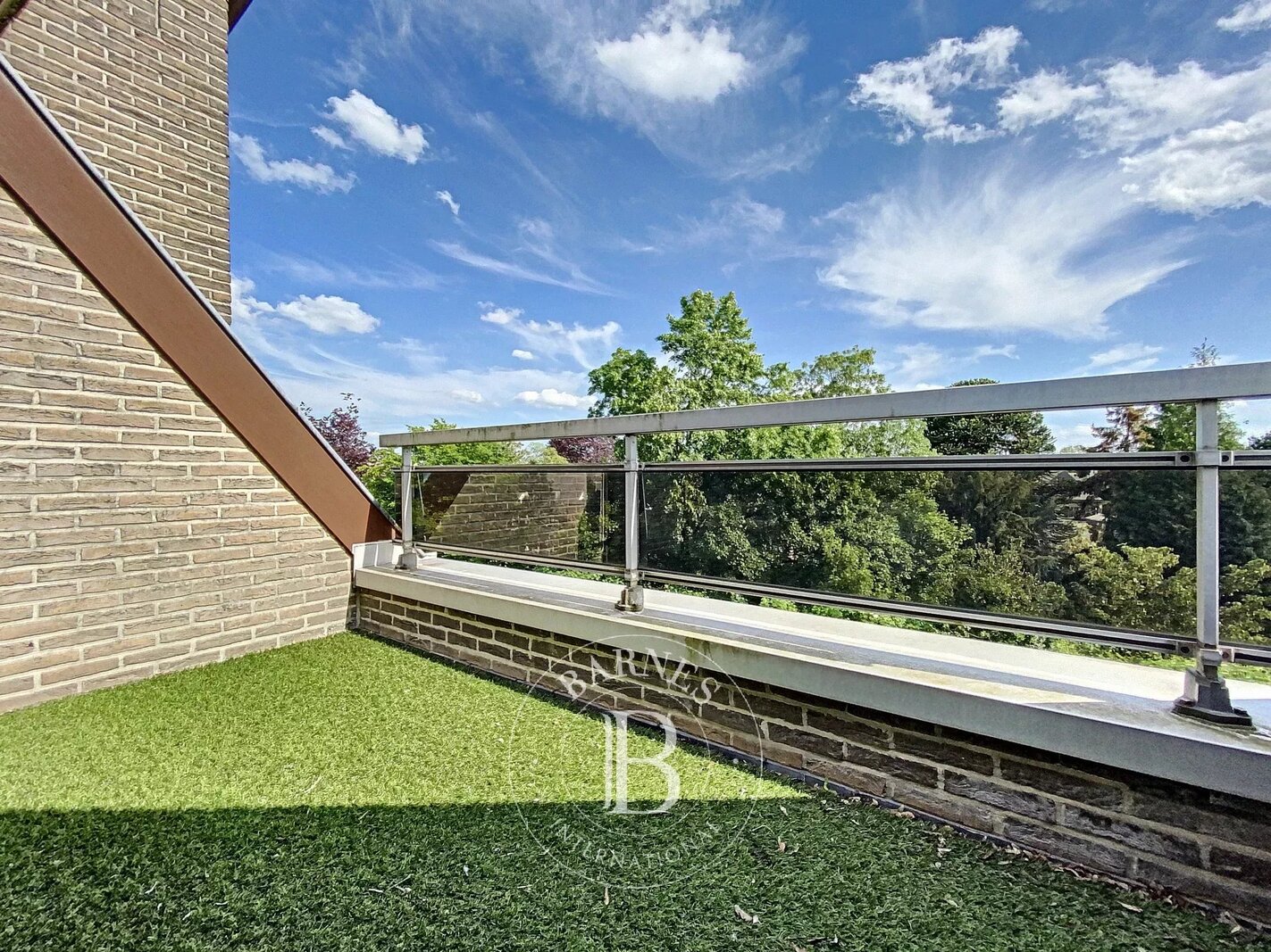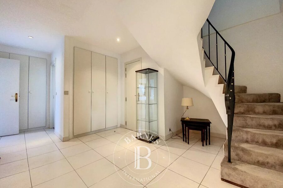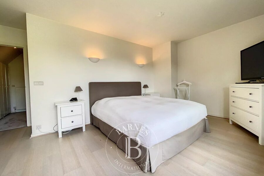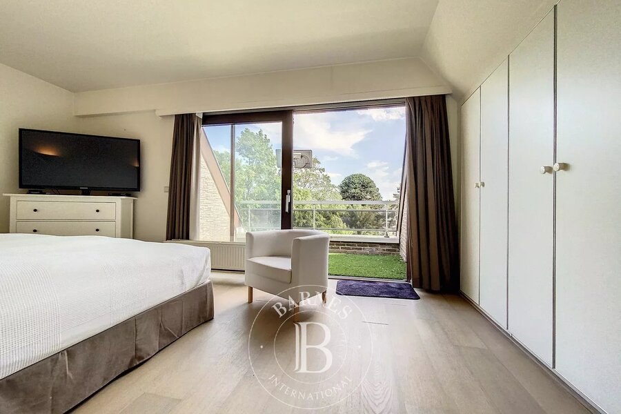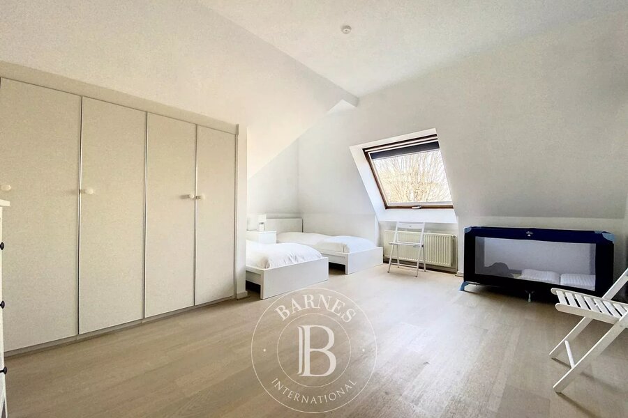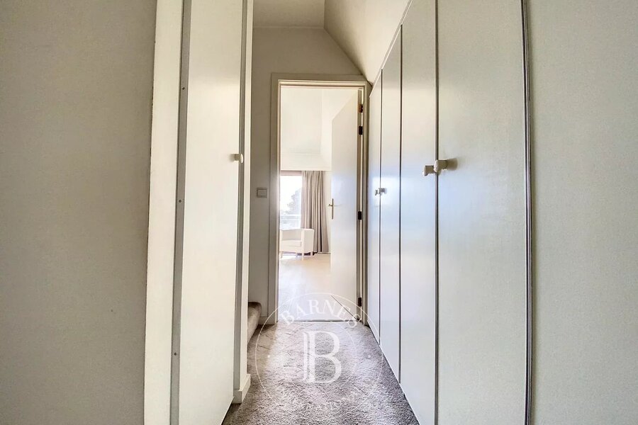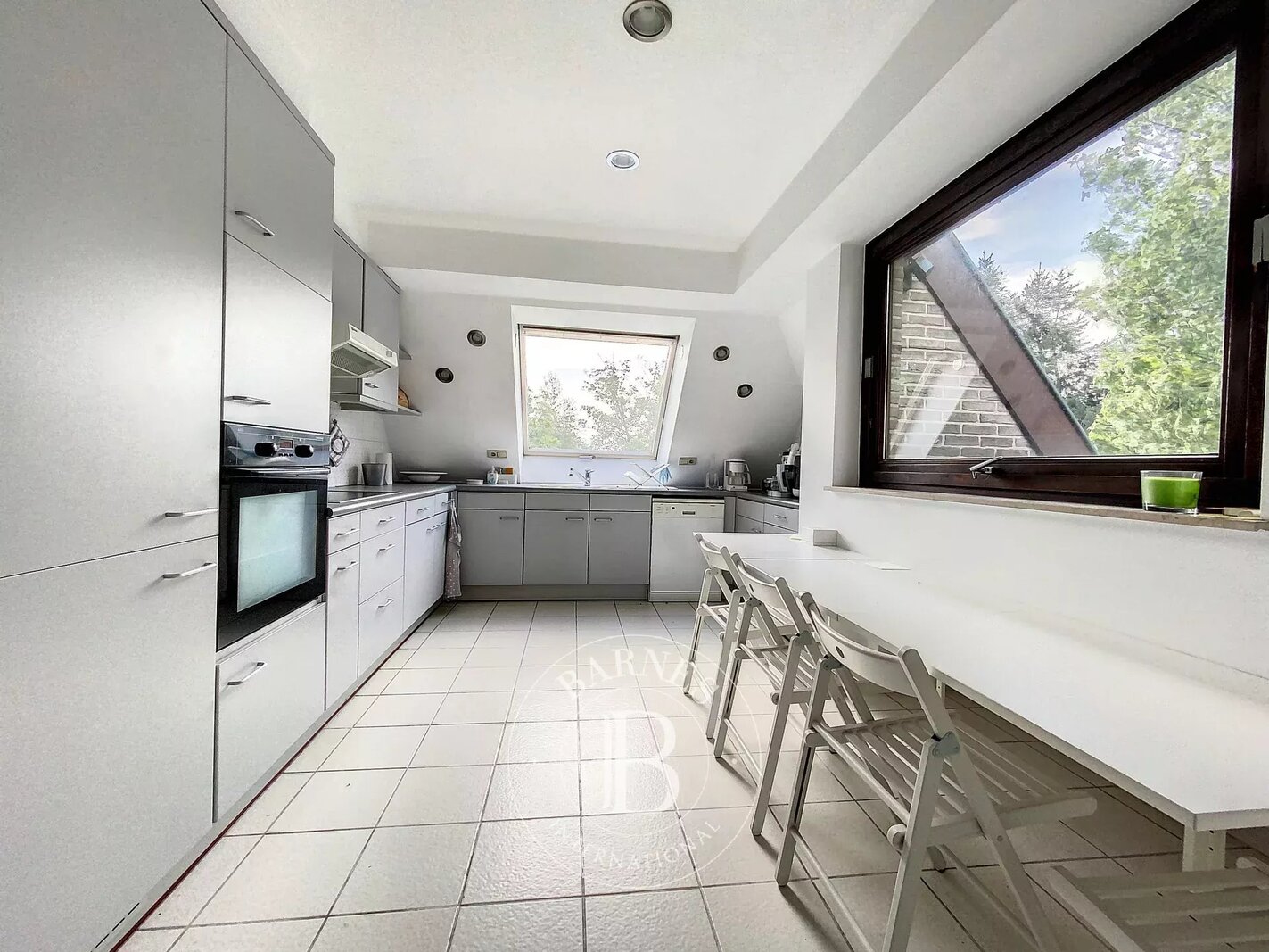 UCCLE / Vert Chasseur. Barnes biedt u deze duplex op de bovenste verdiepingen van een gebouw gelegen in een van de meest gewilde locaties in Ukkel. Het is samengesteld, uit een inkomhal met vestiaire en gastentoilet, een woonkamer van +/- 50 m2 met open haard op gas, die toegang geeft tot een groot terras van +/- 20 m2 op het ZW, een eetkamer, een volledig uitgeruste keuken, een bureau en een wasruimte. Op de eerste verdieping zijn er twee slaapkamers van +/- 20 m2, één met een eigen terras en elk met ingebouwde kasten en een eigen badkamer/douche. Een kelder en een dubbele doos vervolledigen dit eigendom. (50 000 euros). Mogelijkheid voor een 3e slaapkamer en 3e badkamer. PEB D+