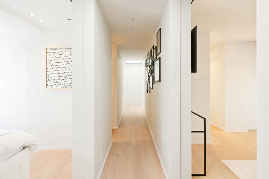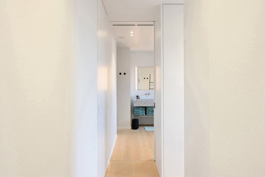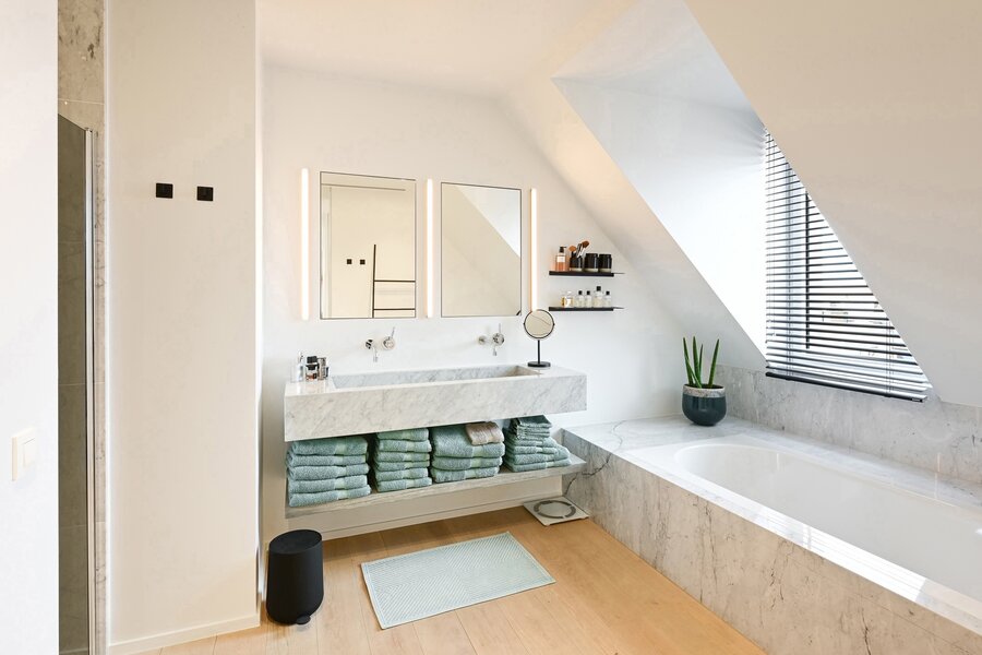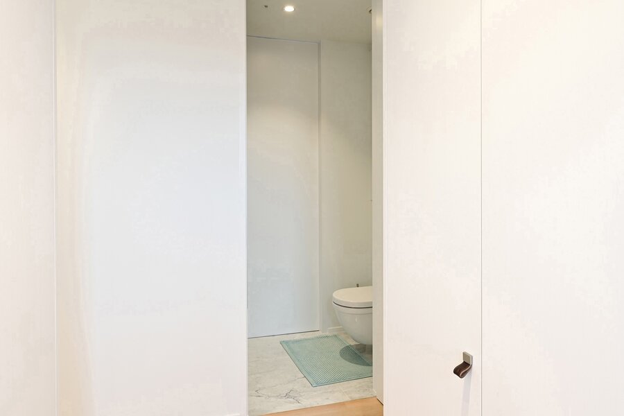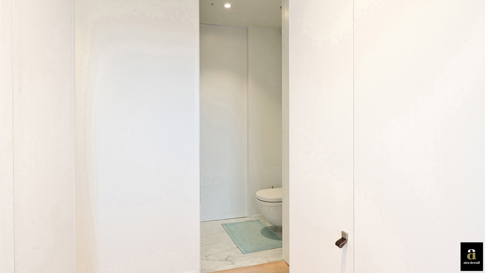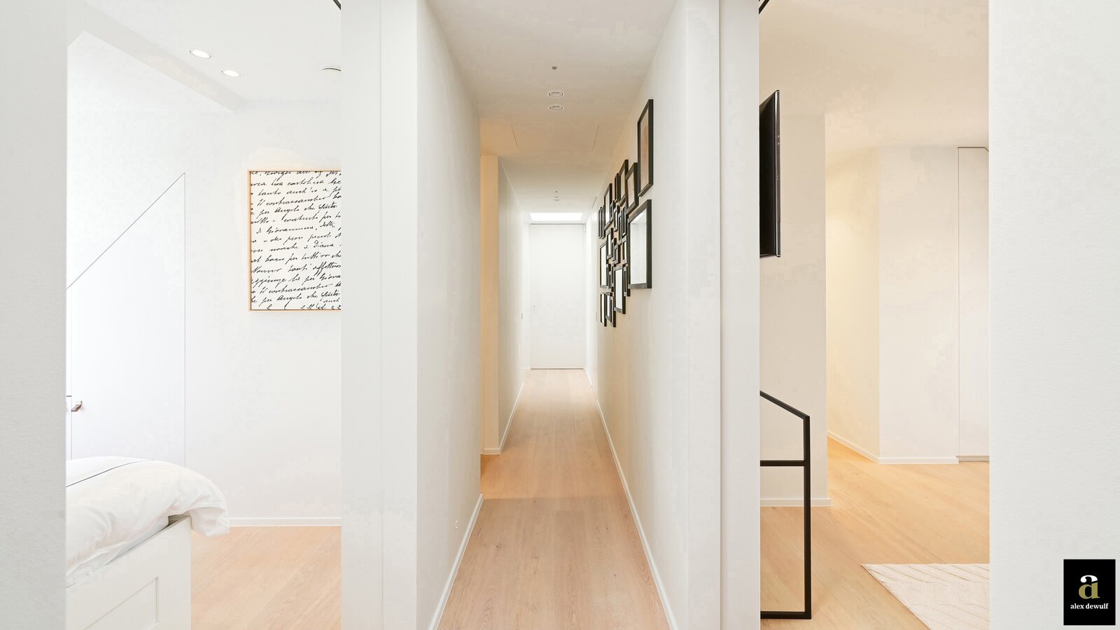 De 6e verdieping beschikt over drie slaapkamers, allemaal voorzien van ingemaakte kasten. De master bedroom beschikt over een eigen dressing en een aansluitende badkamer met apart toilet, ligbad, inloopdouche en ruime wastafel, alles afgewerkt in luxe Carrara marmer. Daarnaast is er een aparte douchekamer, eveneens in Carrara marmer, en een praktische wasberging.