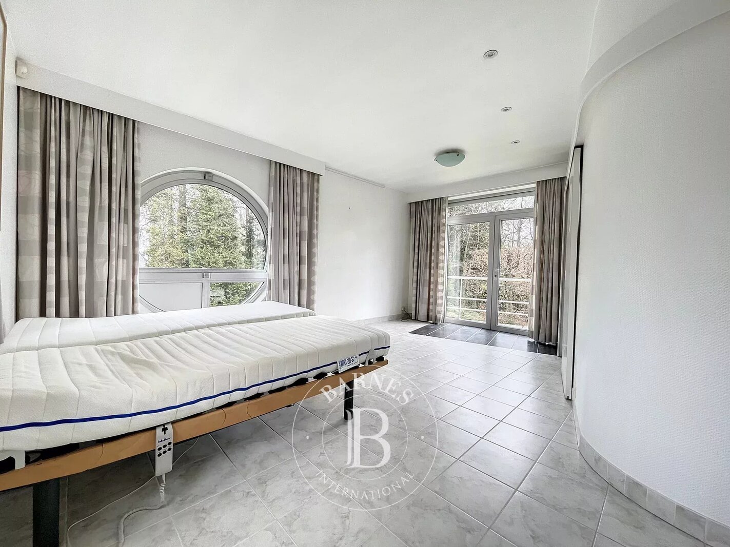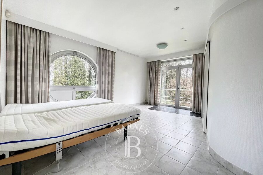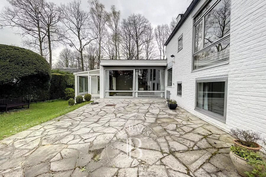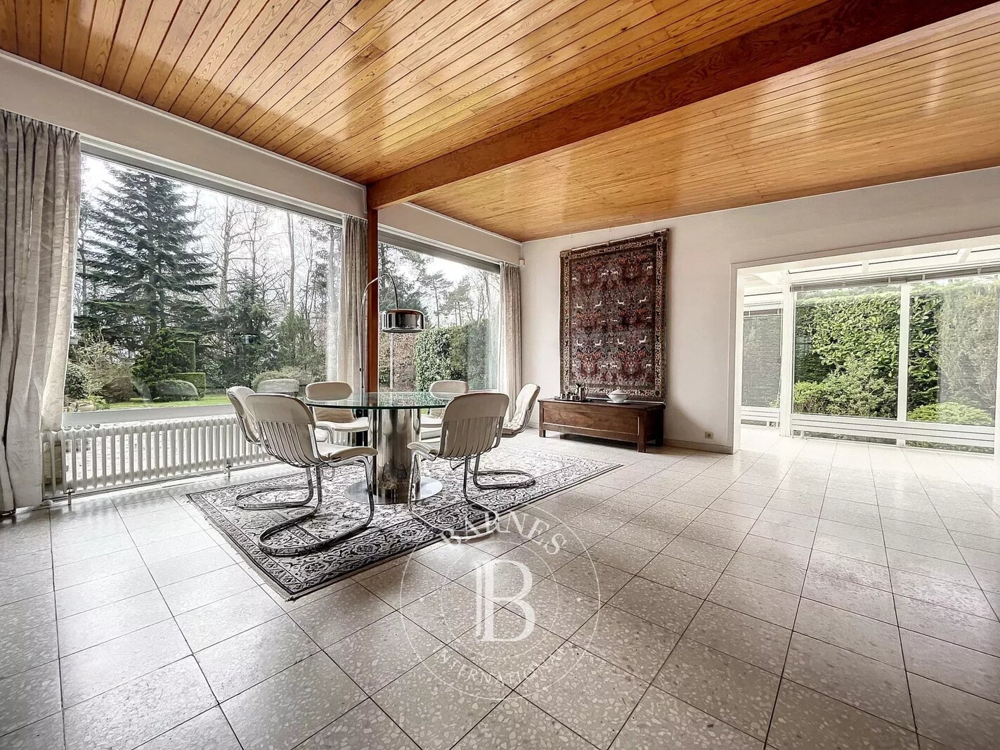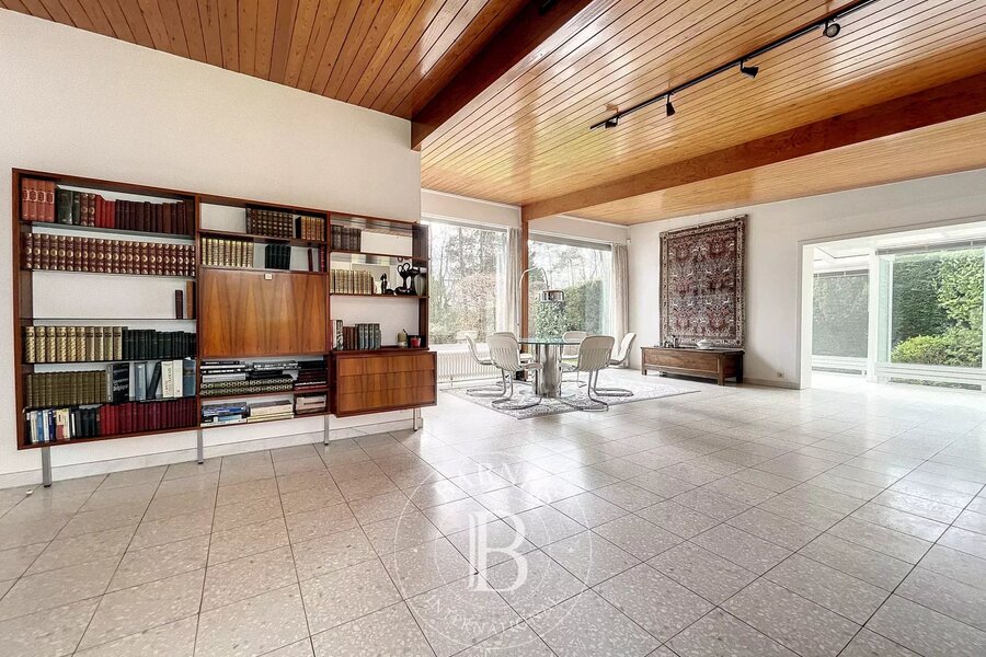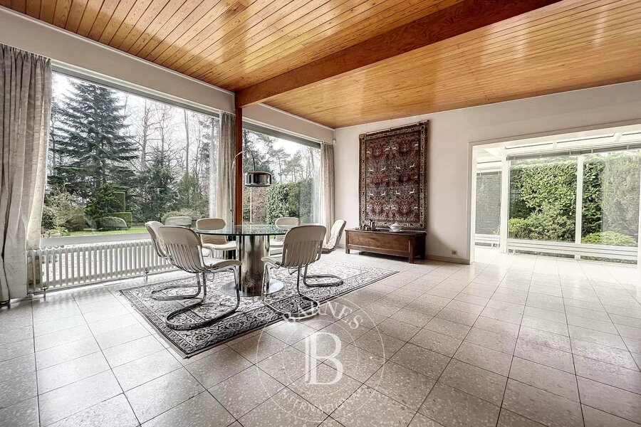 Barnes Brussels biedt u deze atypische villa aan, ontworpen door architect Jean Van Coppenolle in de jaren 1960. De architectuur is gemodelleerd naar Californische villa's in LA, waar de natuur het huis lijkt binnen te komen door de grote erkers, in harmonie met de majestueuze bomen. De villa van 303 m2 (volgens PEB) met 15,60 hectare grond, een groot terras en een tuin op het zuidwesten, ligt in het midden van het perceel.