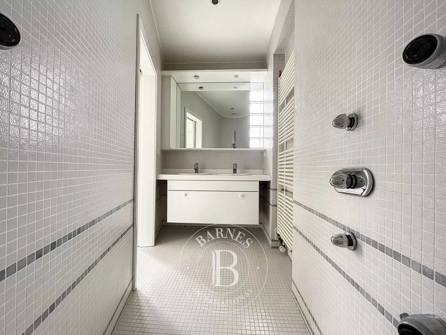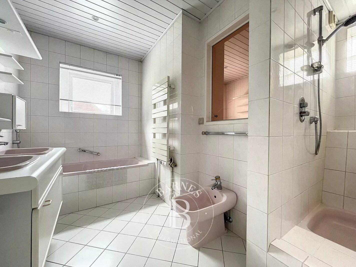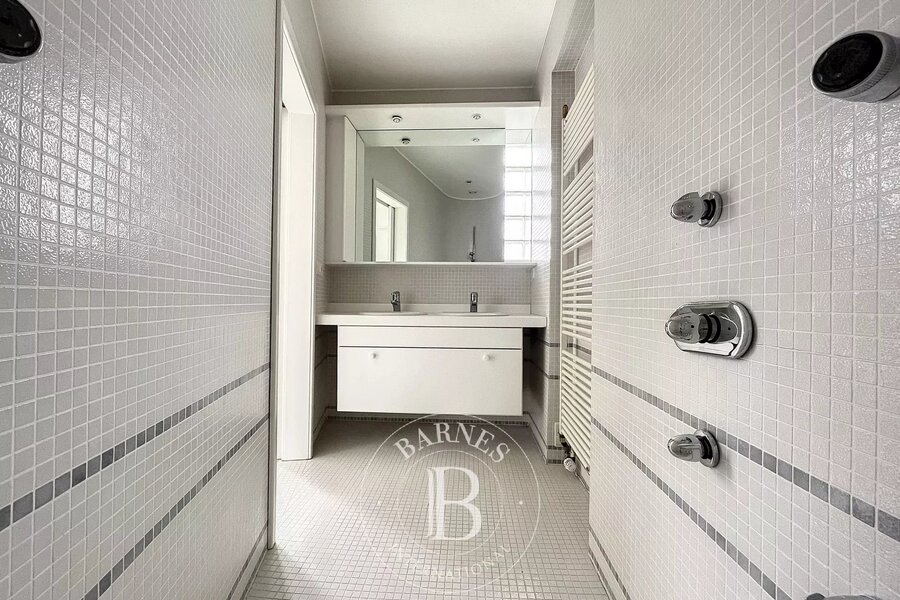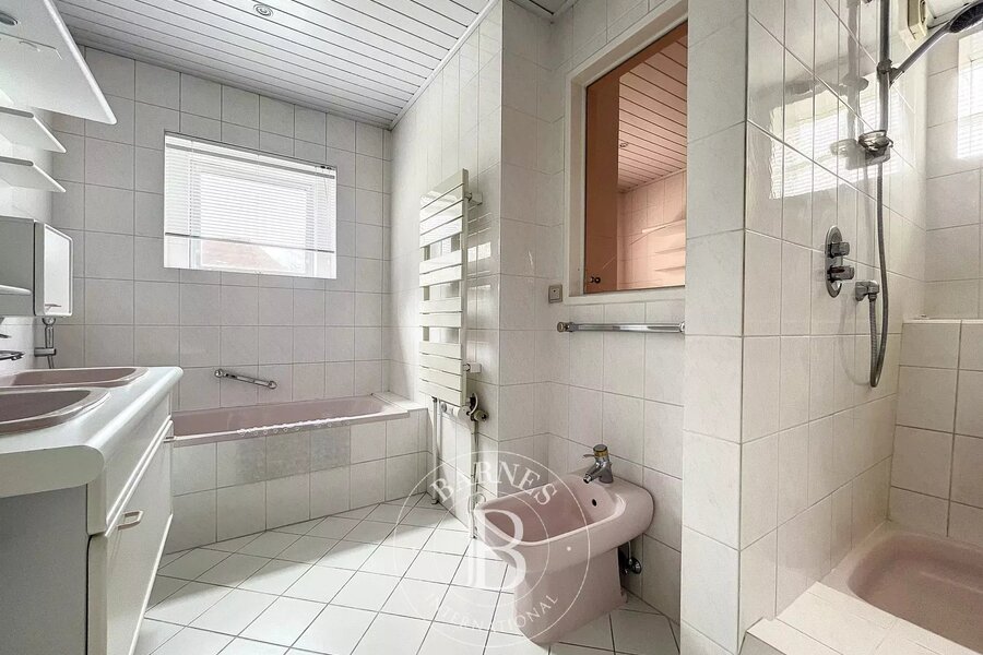 Vanuit de hal leiden een paar treden naar 2 slaapkamers met aangrenzende badkamers en, aan het eind van de gang, de ouderslaapkamer met aangrenzende doucheruimte.
