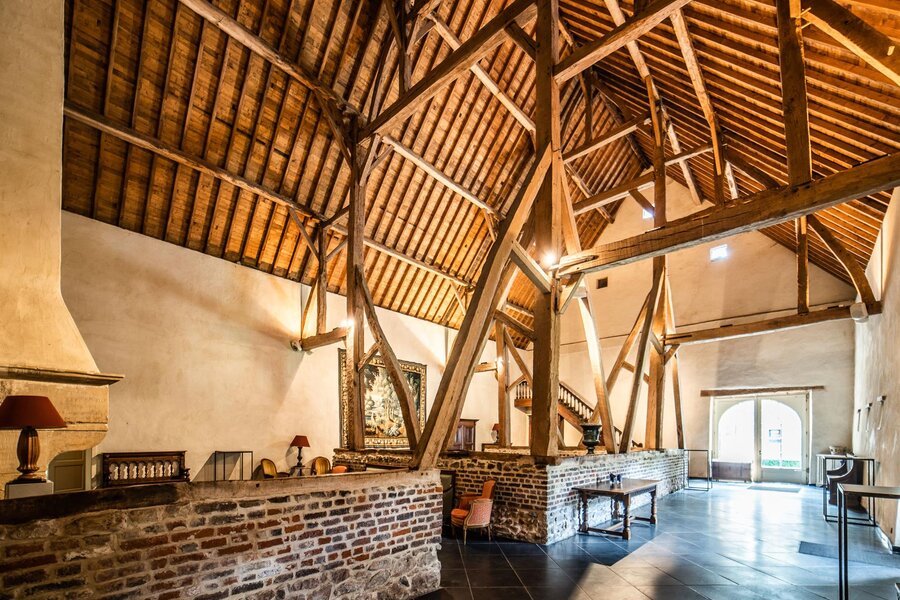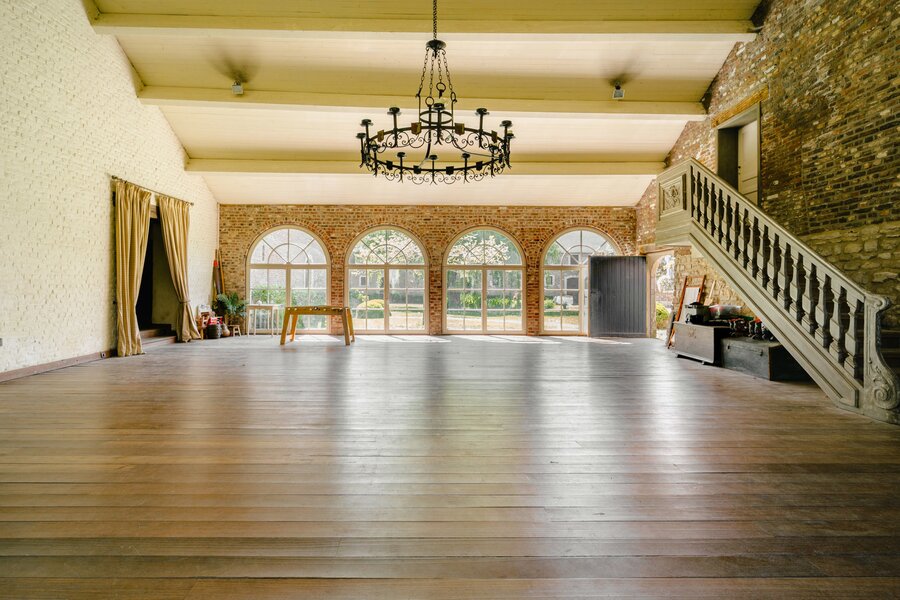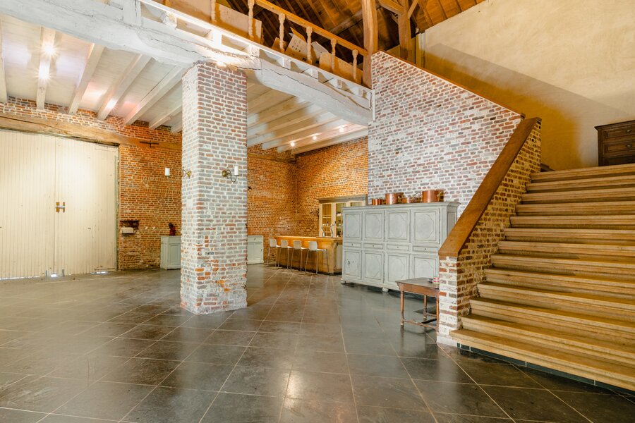 De hoeve onderscheidt zich door haar hoofdgebouw, zorgvuldig gerestaureerd met respect voor het authentieke karakter, en een imposante schuur die volledig uitgerust is voor het organiseren van evenementen. Ook de oorspronkelijke oranjerie en stallen verkeren in uitzonderlijk goede staat.