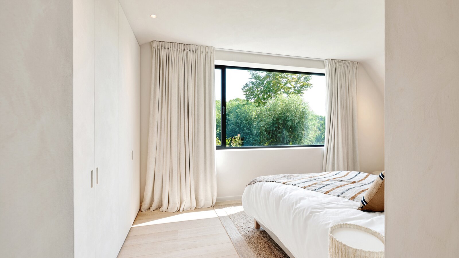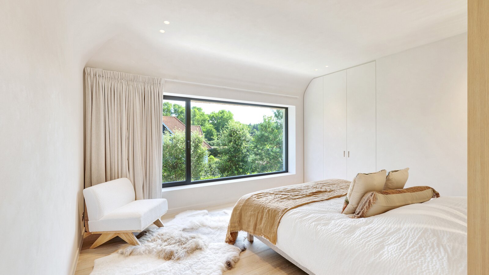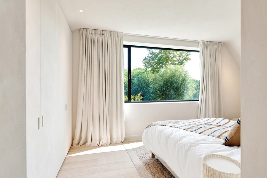 Op de 1ste verdieping bevindt zich de master bedroom met dressing en badkamer (bad/douche/dubbele lavabo/toilet). Nog 3 ruime slaapkamers, elk met hun eigen douchekamer.