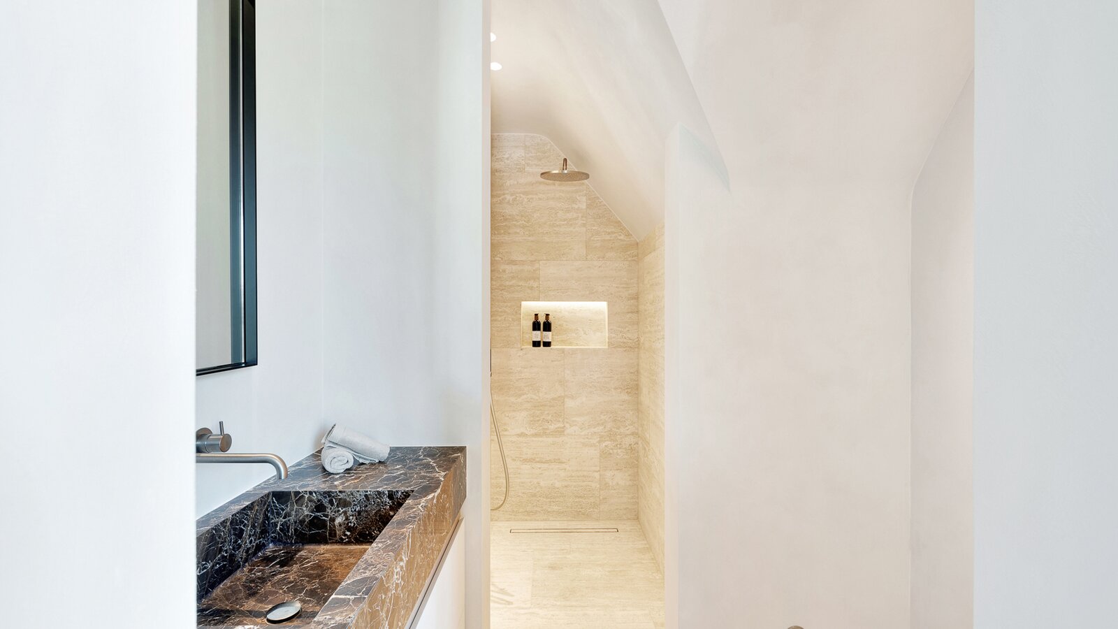 Op de 2de verdieping de 5de en 6de slaapkamer met een gedeelde douchekamer. Technische ruimte en zolderruimte.
