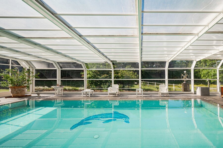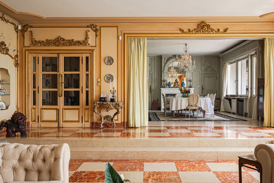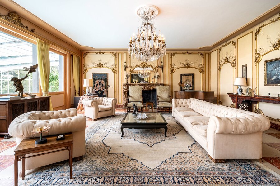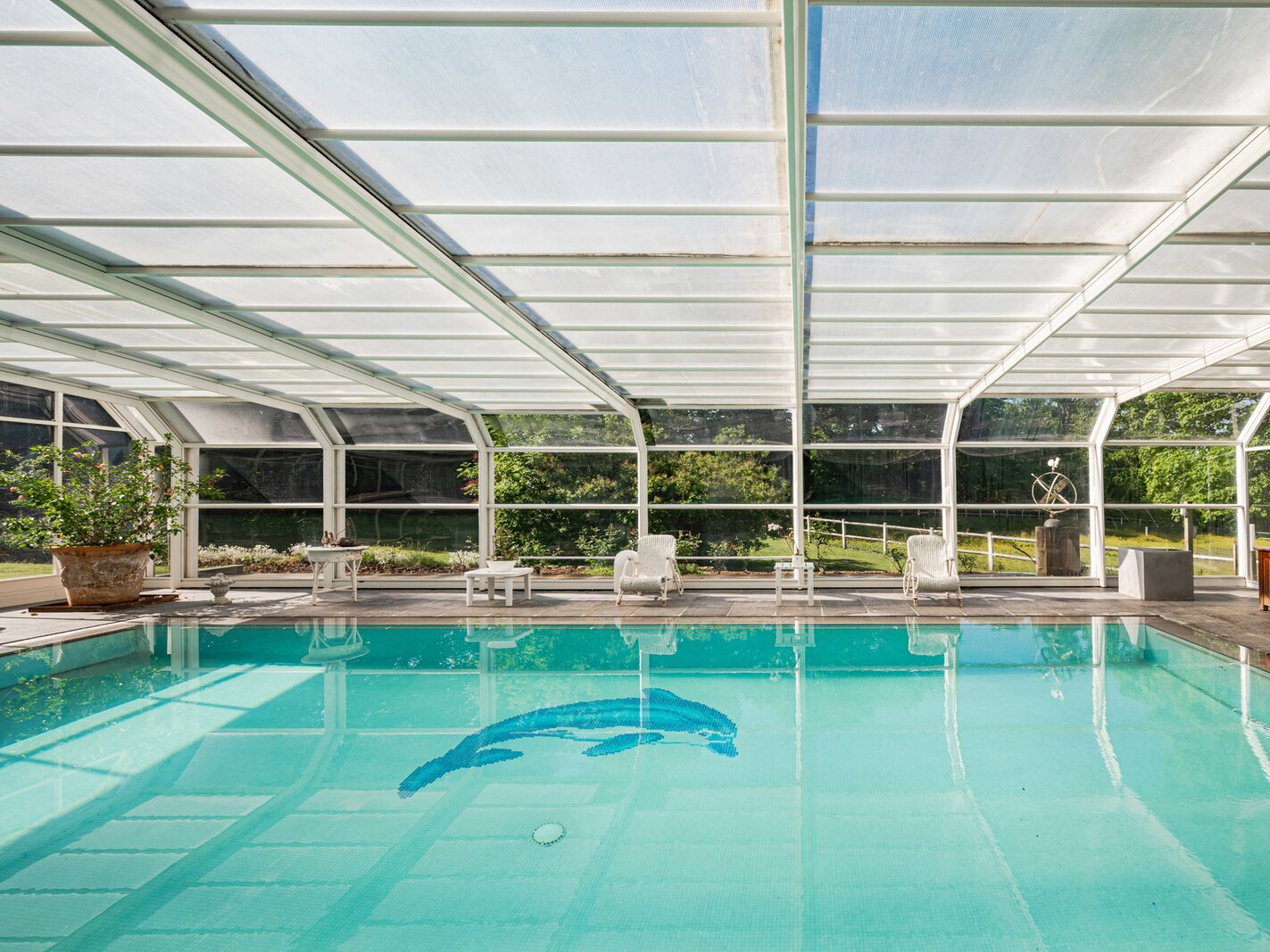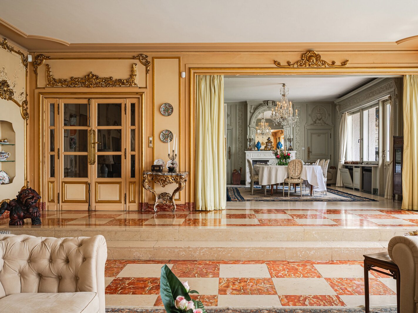 Het landhuis, daterend uit het einde van de 19e eeuw, heeft een totale oppervlakte van ± 1.132 m² en bestaat uit een indrukwekkende inkomhal die enerzijds toegang biedt tot een kantoor of tv-kamer, een gesloten keuken met bijkeuken en een service-ingang, en anderzijds tot ruime receptieruimtes met een salon en een eetkamer die uitkijken op het binnenzwembad en de prachtig georiënteerde tuin, volledig vrij van inkijk. De slaapvertrekken omvatten een master suite met dressing en badkamer in de suite, drie slaapkamers, twee aparte badkamers, een multifunctionele ruimte/family room en een extra keuken.