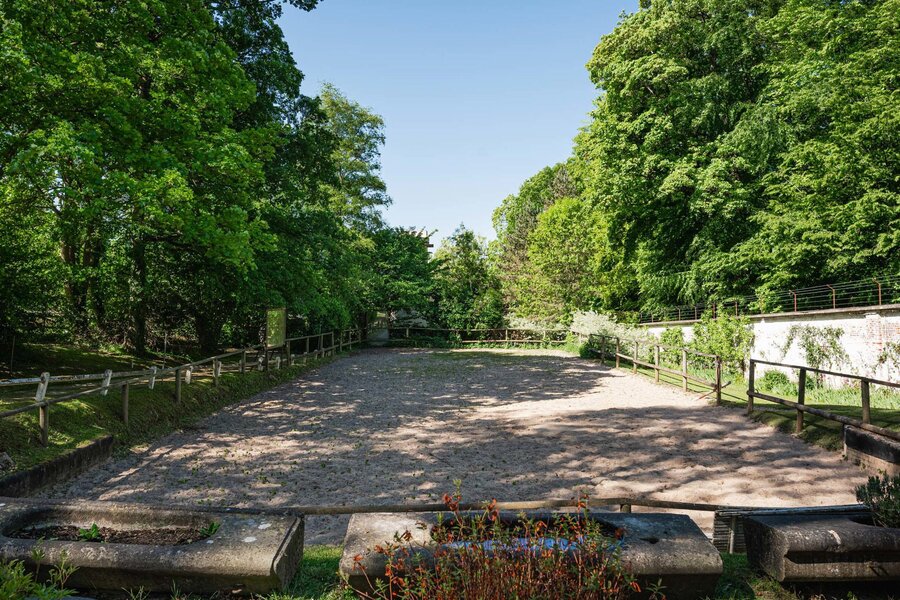 Het equestrian complex beschikt over een binnenmanege met zandbodem (45x15m), een omheinde weide, 10 stallen en een ruimte voor onderhoud en opslag.