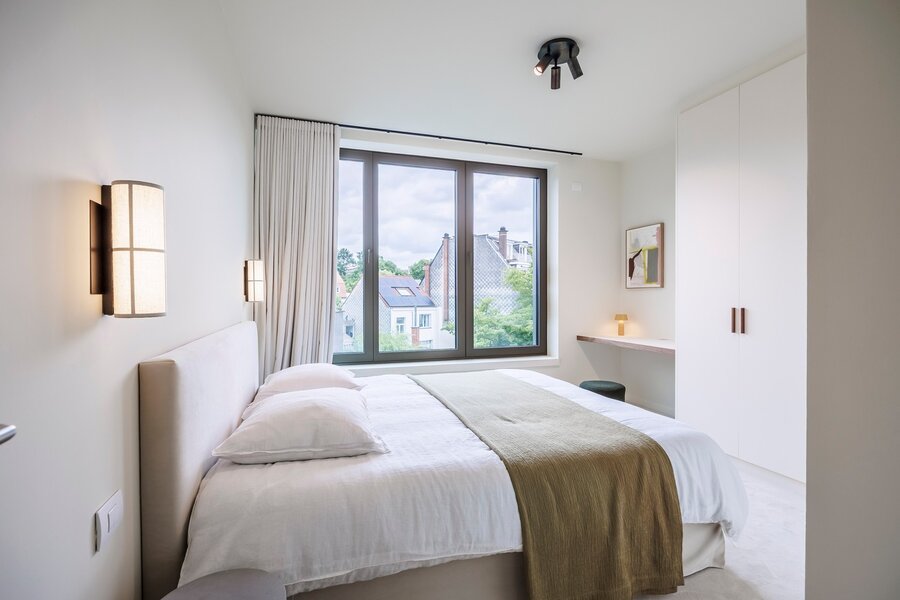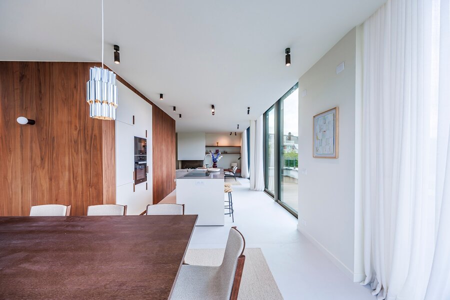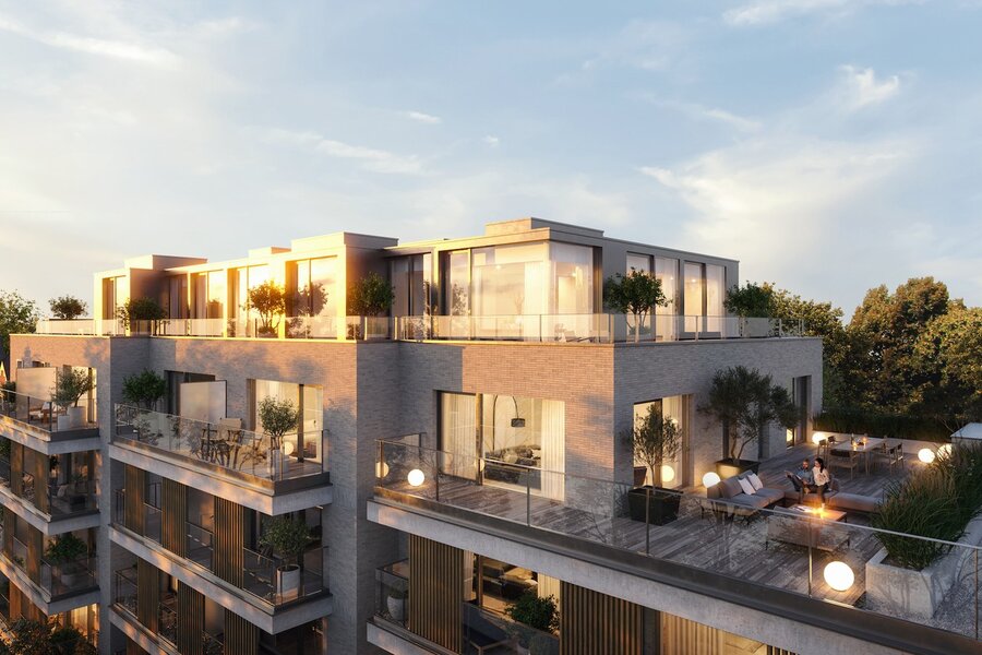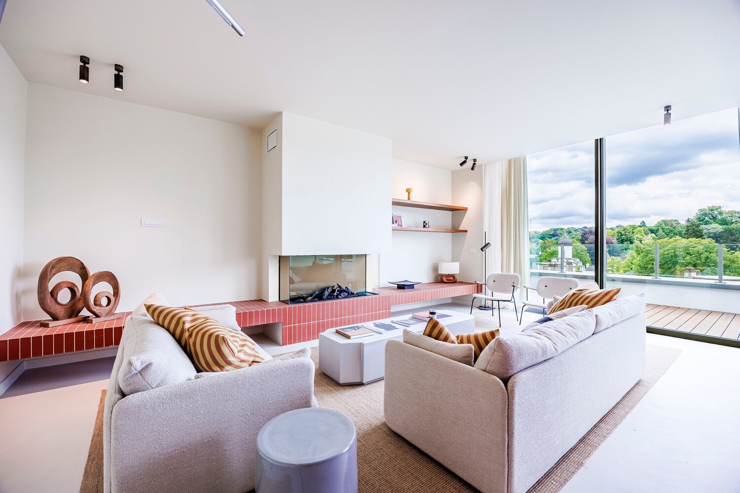 Deze exclusieve penthouse combineert een strak design met praktische luxe, zoals een privélift, open leefruimtes en perfect georiënteerde terrassen.