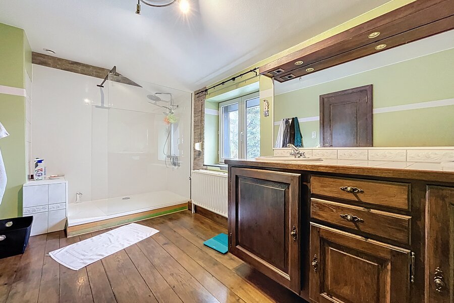Patrick Bollue (IPI516.745) van het kantoor ERA LABELIMMO biedt u met veel plezier deze charmante en gezellige oude boerderij aan, gelegen op een perceel van bijna 20.000 m² met tuin, weide, schuur (105 m²) en parkeerplaats. 205 m² bewoonbare oppervlakte, als volgt samengesteld: inkomhal, vestiaire (kantoor), 3 slaapkamers, kantoorruimte, 2 badkamers, keuken, woonkamer, salon met ramen naar de tuin, stookruimte (30 m²), nachthal. +: terras, schuur + verdieping, nachthal, kelder. TECHNISCH: EPC D (n20251013032697), elektriciteit niet conform, recente PVC-ramen, zonnepanelen, verwarming op hout en stookolie, isolatie van dak en muren. RC: 552 €. PRIJS: 595.000 €. Bezoeken op 043/720.720 of via info@eralabelimmo.be Informatie ter indicatie en niet bindend. Deze advertentie vormt geen aanbod.