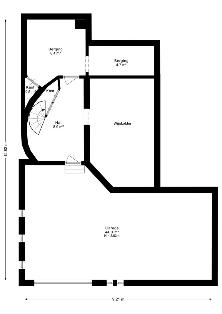 Kelder verdieping : Inpandige garage, wijnkelder, technische ruimte en extra opbergruimte