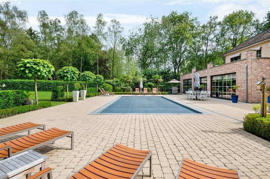 De villa is vrijwel volledig onderkelderd en biedt tal van praktische ruimtes: bergruimtes, een wasplaats, een sanitaire ruimte met douche én een ontspanningsruimte die momenteel is ingericht als privécafé. De prachtige, omheinde parktuin straalt rust, ruimte en privacy uit. Achter de woning bevindt zich een ruim terras met zicht op het royale zwembad en een verzorgd poolhouse.