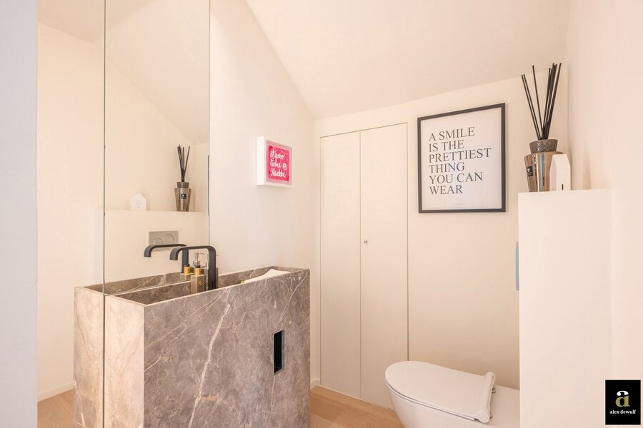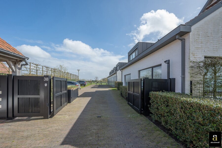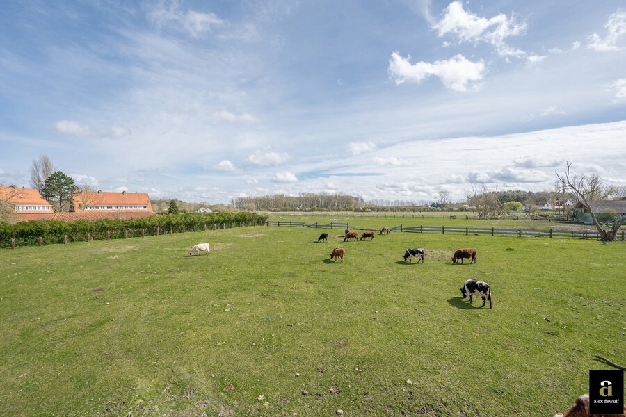 Uitzonderlijke eigendom met een uniek open zicht op de Hazegraspolders, vlakbij het Oosthoekplein. Indeling: inkomhal met vestiaire. Volledig ingerichte keuken met keukentoestellen Miele (combi, micro, stoomoven, grote oven, wijnfrigo,...), lichtrijke leefruimte met eetplaats genietend van het uitgestrekte open zicht naar de polders, haard op bio ethanol. Gastentoilet met extra berging. 3 volwaardige slaapkamers waarvan 2 slaapkamers met elk hun privatieve douchekamer en de master kamer met aansluitend badkamer met ligbad, douche, dubbele lavabo en toilet. Alle kamers zijn voorzien van ingemaakte kasten. Op de begane grond bevindt zich een charmante tuin met terras. Inpandige ruime garage voor 2 wagens, volledige kastenwand en wasplaats. Elektrisch oplaadpunt. 2 parkeerplaatsen buiten en 1 bezoekersparking. De woning is rustig gelegen op wandelafstand van het Zwin, de zee en de winkels. Luxe afwerking met mooie materialen. Vloerverwarming, alarm.
