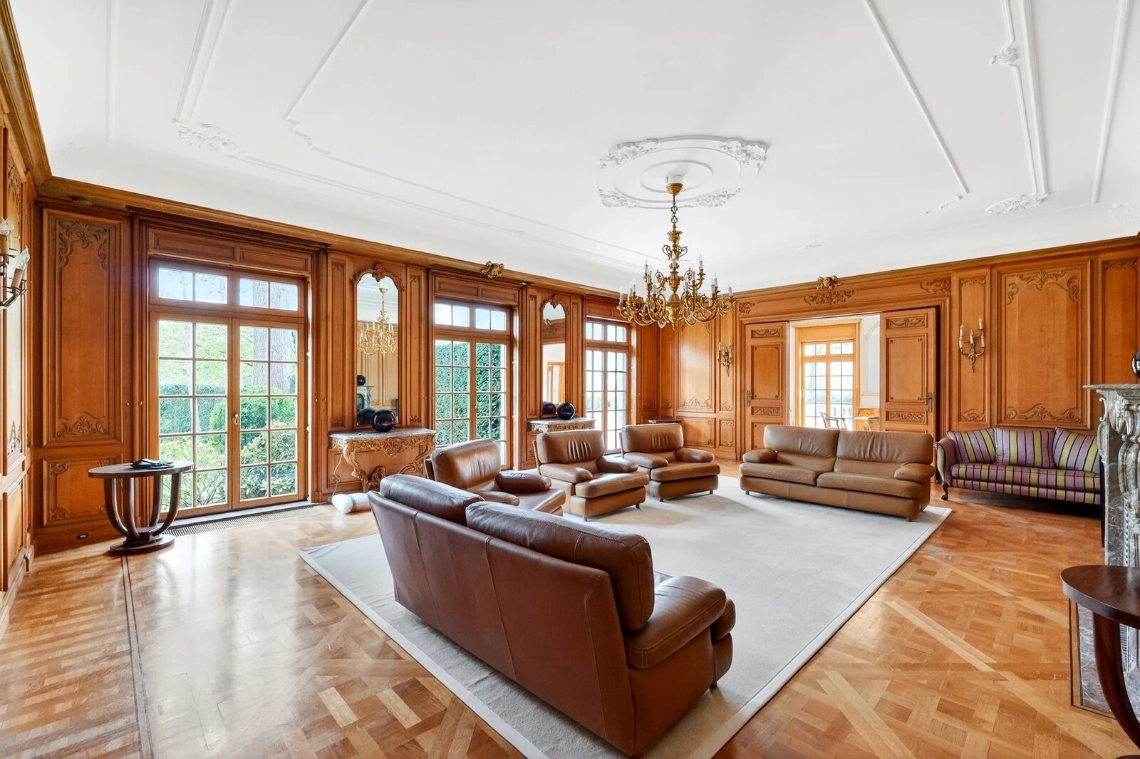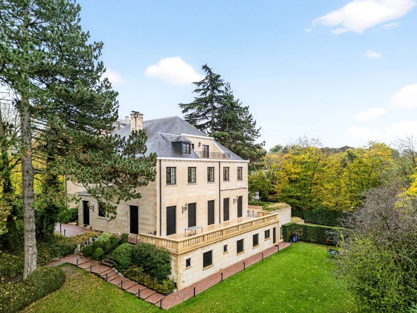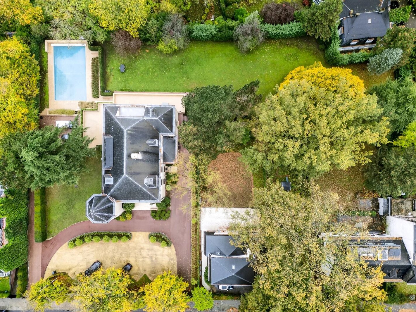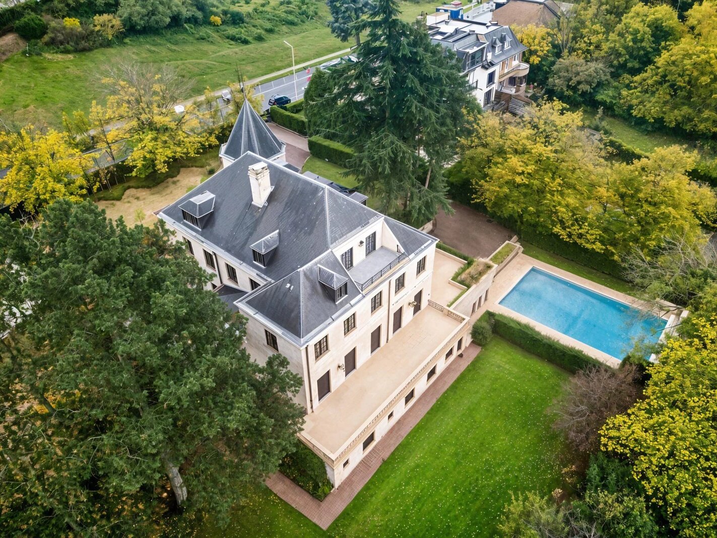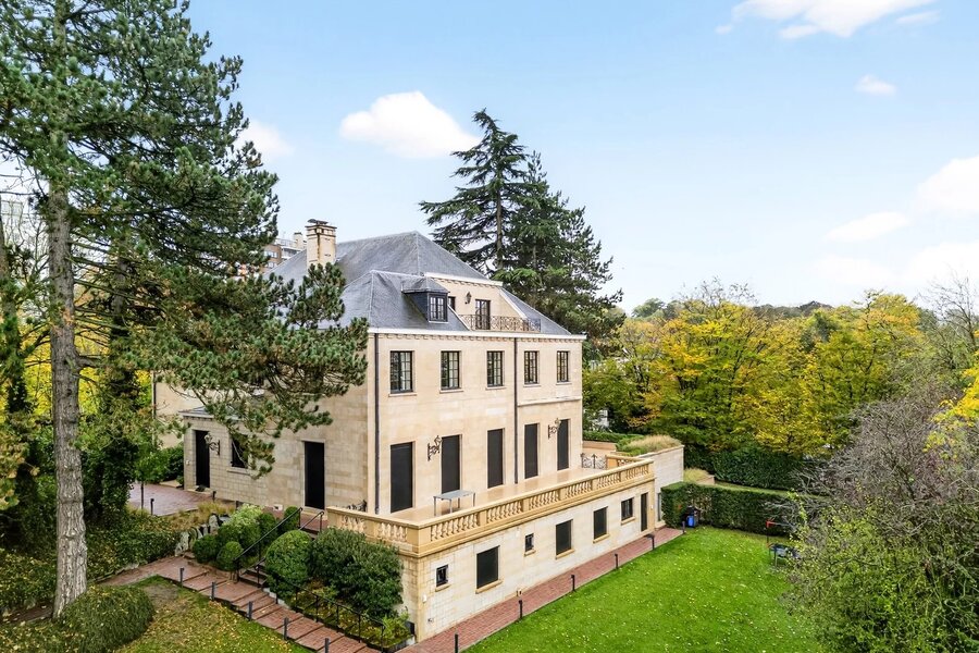 Bos aan de rand van een park, in het hart van Brussel, presenteert Victoire Junot u deze prestigieuze en elegante woning in Franse steen gelegen op een terrein van +/-49 are zonder inkijk. Met ongeveer 1500m² bebouwd, biedt het op de begane grond een weelderige marmeren inkomhal met een hoogte van 7 m, zeer grote ontvangstruimtes (+- 240m²), met een lambrisering woonkamer met open haard, grote formele eetkamer, kleine eetkamer, een ruime professionele keuken "La Cornue" en een kantoor. Op de verdiepingen, prachtige galerij op de mezzanine, 6 slaapkamers en suite. In de kelder, talrijke kelders, sauna, dubbele garage, polyvalente kamer, een conciërgewoning met twee slaapkamers en een badkamer. Lift. Verwarmd zwembad (8 x 15m²) Poort met beveiligde toegang, automatische rolluiken, inbraakwerende ramen op de begane grond. Parkeerplaats voor 10 V buiten. EPC E