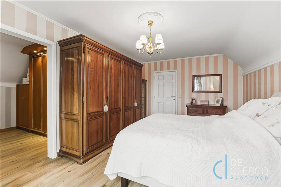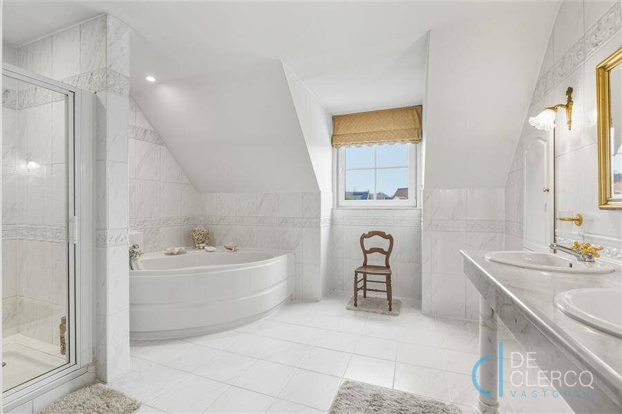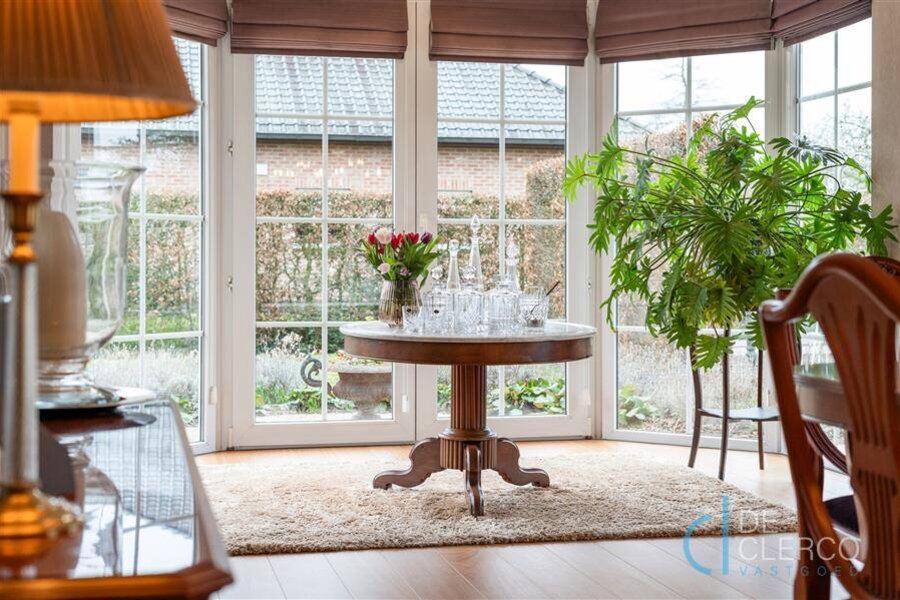 Bij het betreden van de villa wordt u meteen overdonderd door de royale inkomhal met dubbele deur naar de leefruimte. Deze kamer is ingericht met veel aandacht voor detail zoals een marmeren houthaard, sfeervolle erker en een warme tint van parketvloer. De keuken is volledig uitgerust met kwalitatieve kasten en toestellen. In de veranda geniet u van gezellige momenten met het gezin en is het steeds een beetje zomer in huis. Langs de karaktervolle trap komt u op de eerste verdieping met badkamer en 3 volwaardige slaapkamers, de masterbedroom is ingericht met dressing. Uiteraard biedt de gezinswoning voldoende praktische ruimtes zoals een wasplaats, berging, garage met elektrische poort én beloopbare zolder. Buiten wacht u een parel van een tuin, piekfijn ingedeeld met zongericht terras, loungehoek, tuinhuis en prachtige voortuin, allen afgewerkt met een knipoog naar de stijl van de woonst. De oprit geeft plaats voor maar liefst 4 wagens! Kortom combineert deze villa lichtrijk, comfortabel en stijlvol wonen op een ruim perceel (1.395 m2) in een rustige wijk. Het EPC-label is C en de woonst is asbestvrij! De verkoopprijs van deze prachtige woonst is 920.000 euro excl. registratierechten. Wordt u de nieuwste inwoner van dit uniek pareltje? Aarzel niet om contact op te nemen, maak nu uw afspraak via hendrik@vastgoed-dc.be of de website.