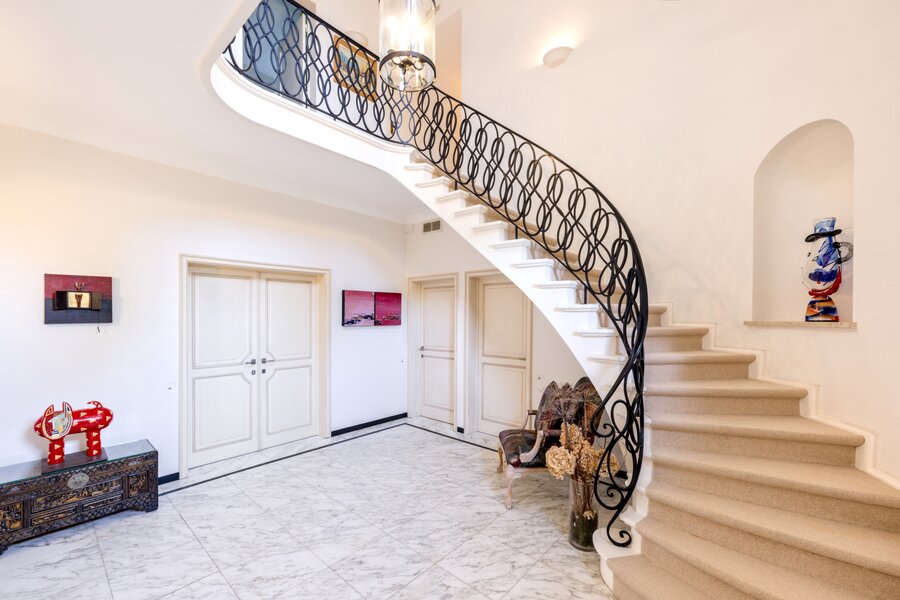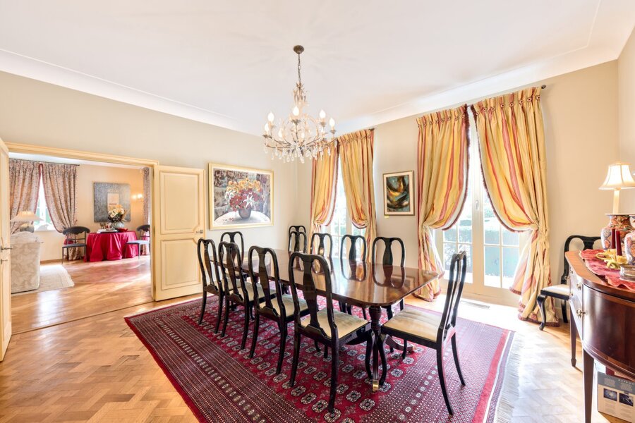 Met ongeveer 550 m² woonoppervlak biedt het huis ruime, lichte ontvangstruimten die uitkomen op het terras en de tuin. De keuken is volledig uitgerust en ontworpen om comfort en gezelligheid te combineren. Het slaapgedeelte bestaat uit zes slaapkamers en vier badkamers, evenals een serviceflat met slaapkamer en badkamer. Een garage en meerdere parkeerplaatsen maken deze woning compleet.