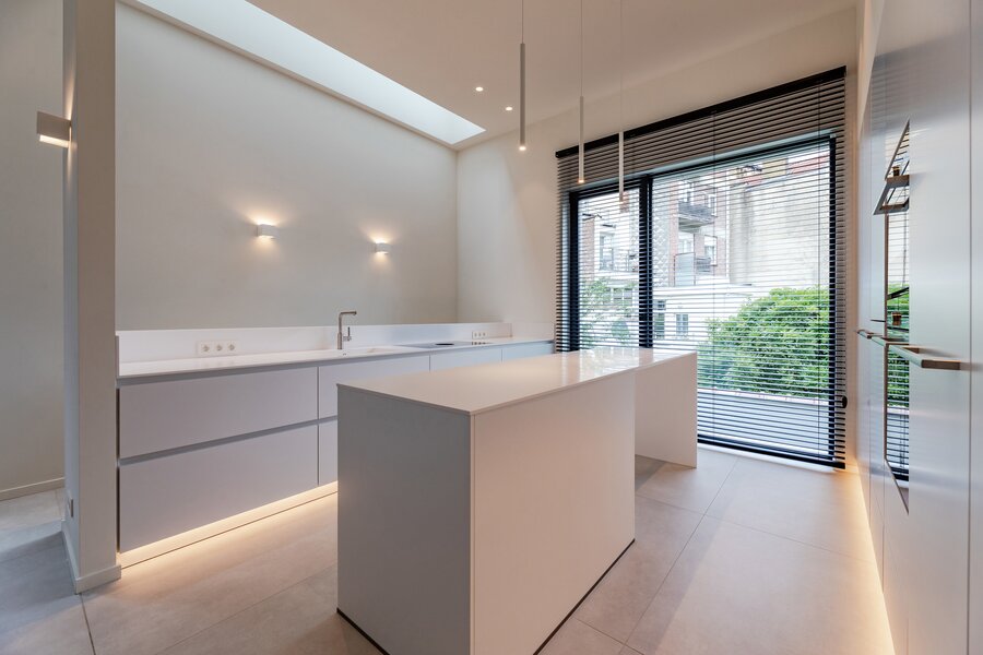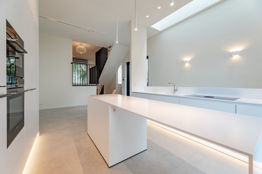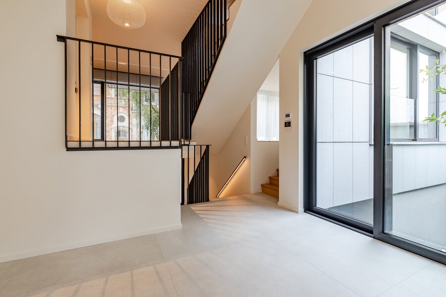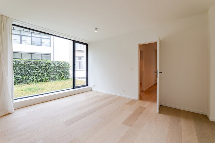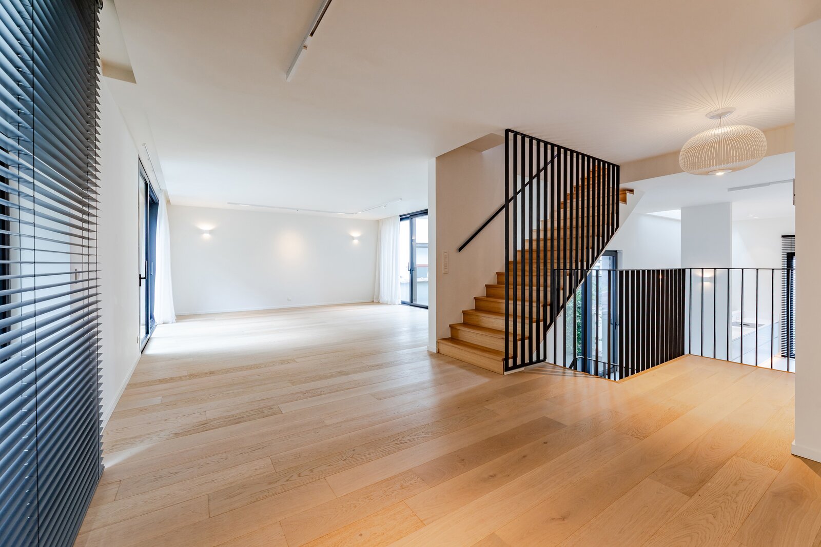 Op loopafstand van het Brugmannplein, prachtige nieuwe moderne woning met een gevel van 11 meter. Zeer licht dankzij de drie gevels. Met een bruto oppervlakte van 467 m², 4 complete suites, een ruimte voor de uitoefening van een vrij beroep, een wellnessruimte met sauna (optionele uitrusting), verschillende terrassen en een charmante tuin (terrein +/- 160 m²). Mogelijkheid om een vijfde slaapkamer in te richten in de ruimte voor de vrije beroepsuitoefening. Lift, garages voor 2 auto's + fiets- en motorparking. EPB A