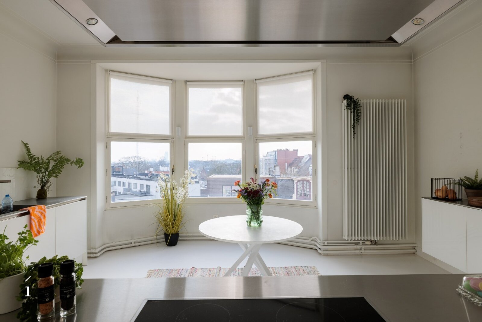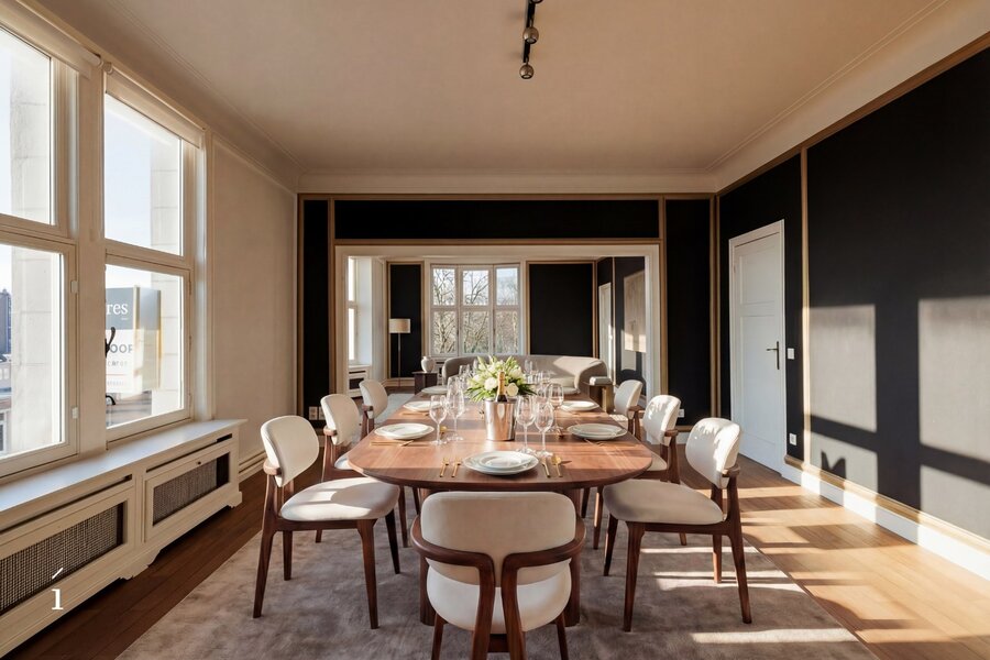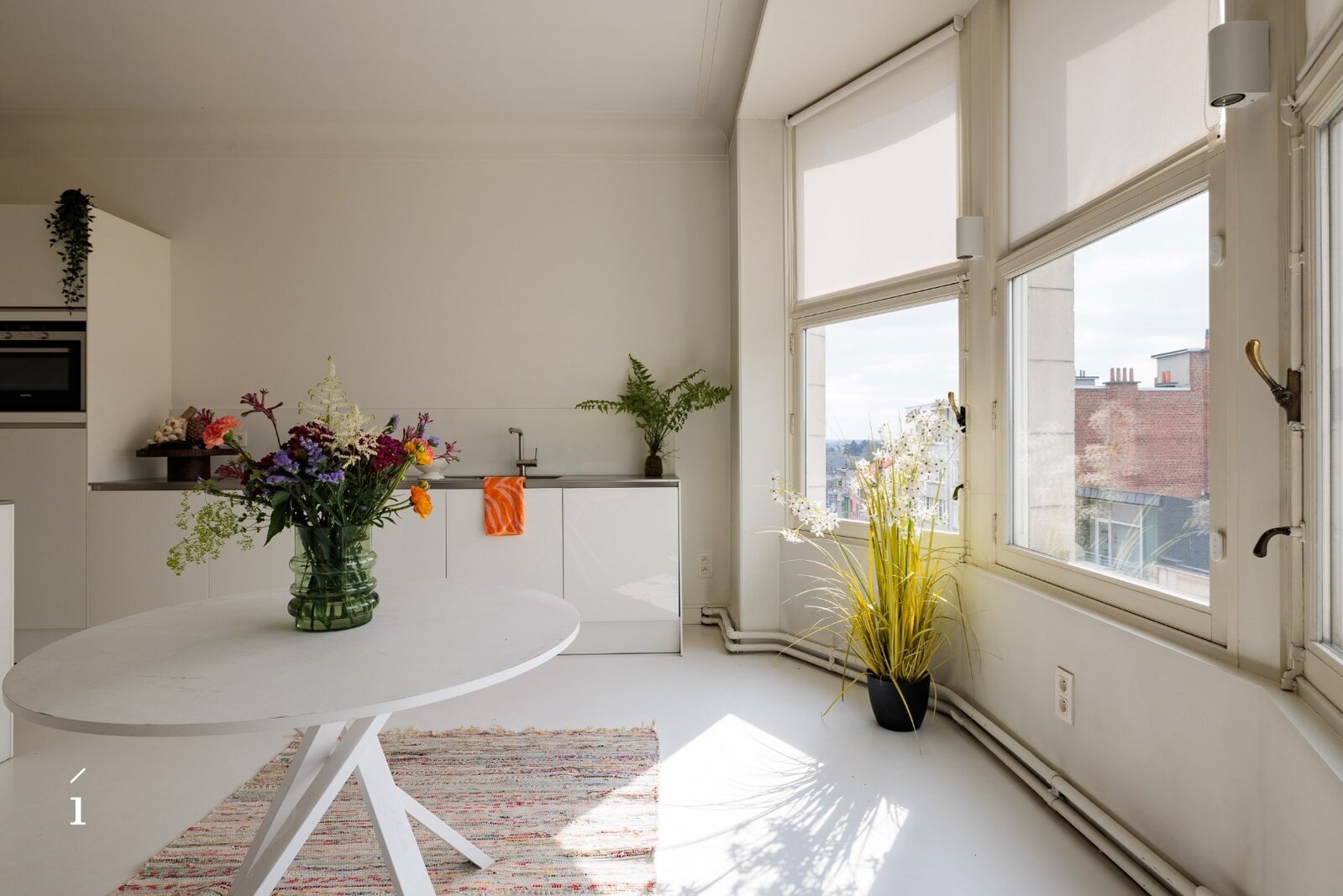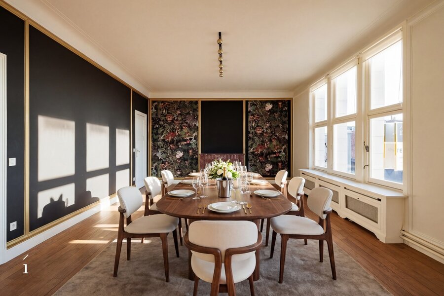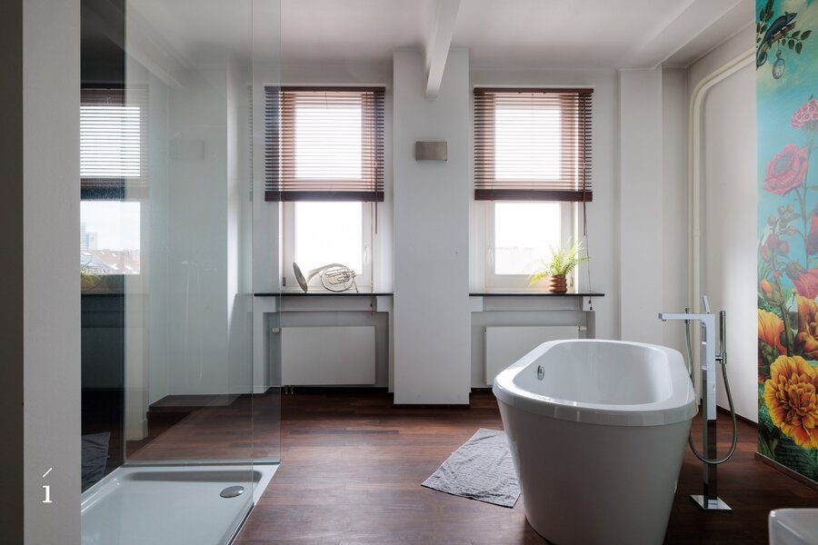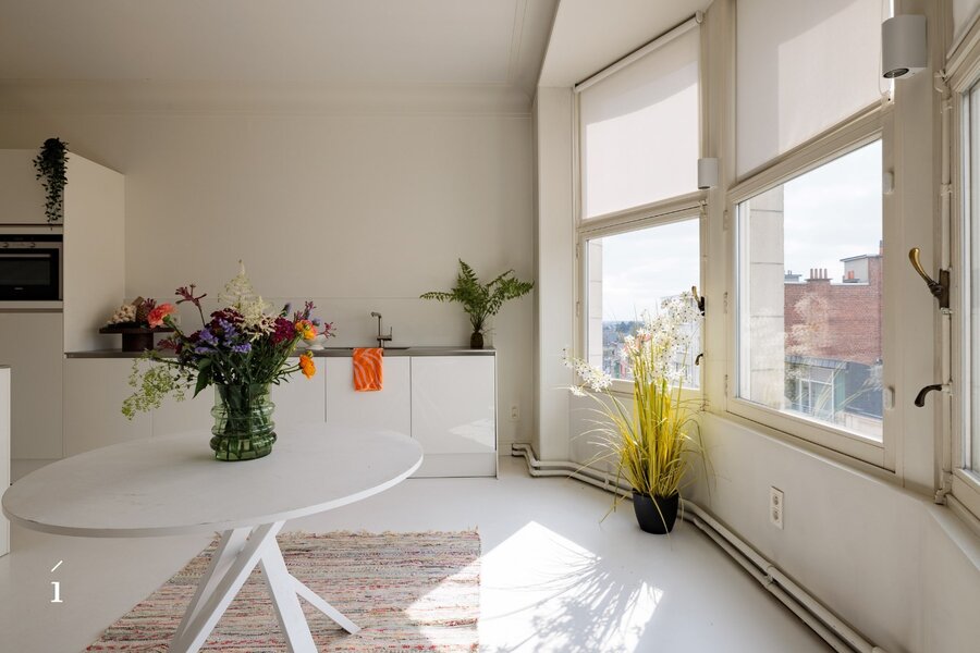 De keuken is opvallend modern, met strakke witte kasten en roestvrijstalen apparaten. De badkamers zijn even eigentijds, waarvan één is uitgerust met een vrijstaand bad en een artistieke muurschildering. Grote ramen in verschillende kamers, waaronder de eetruimte, bieden uitzicht op de stad en het Citadelpark.Een van de meest opvallende kenmerken is het gevarieerde interieurontwerp. Sommige kamers zijn voorzien van gedurfd, patroonrijk behang – van levendige flamingo’s tot herfstachtige taferelen – wat zorgt voor unieke sferen in de verschillende ruimtes. Andere kamers zijn rustiger gehouden, met witte muren en houten vloeren, wat flexibiliteit biedt in de inrichting. Doorheen het hele appartement is er aandacht voor detail, met sierlijsten, stijlvolle verlichtingsarmaturen en opvallende muurtaferelen. De combinatie van hedendaagse designelementen met af en toe een gedurfd accent resulteert in een woonruimte die zowel functioneel als visueel intrigerend is.Om het plaatje compleet te maken kan er nog optioneel een ruime inpandige garage (23 m²) bijgekocht worden voor een meerprijs van 50.000 euro.
