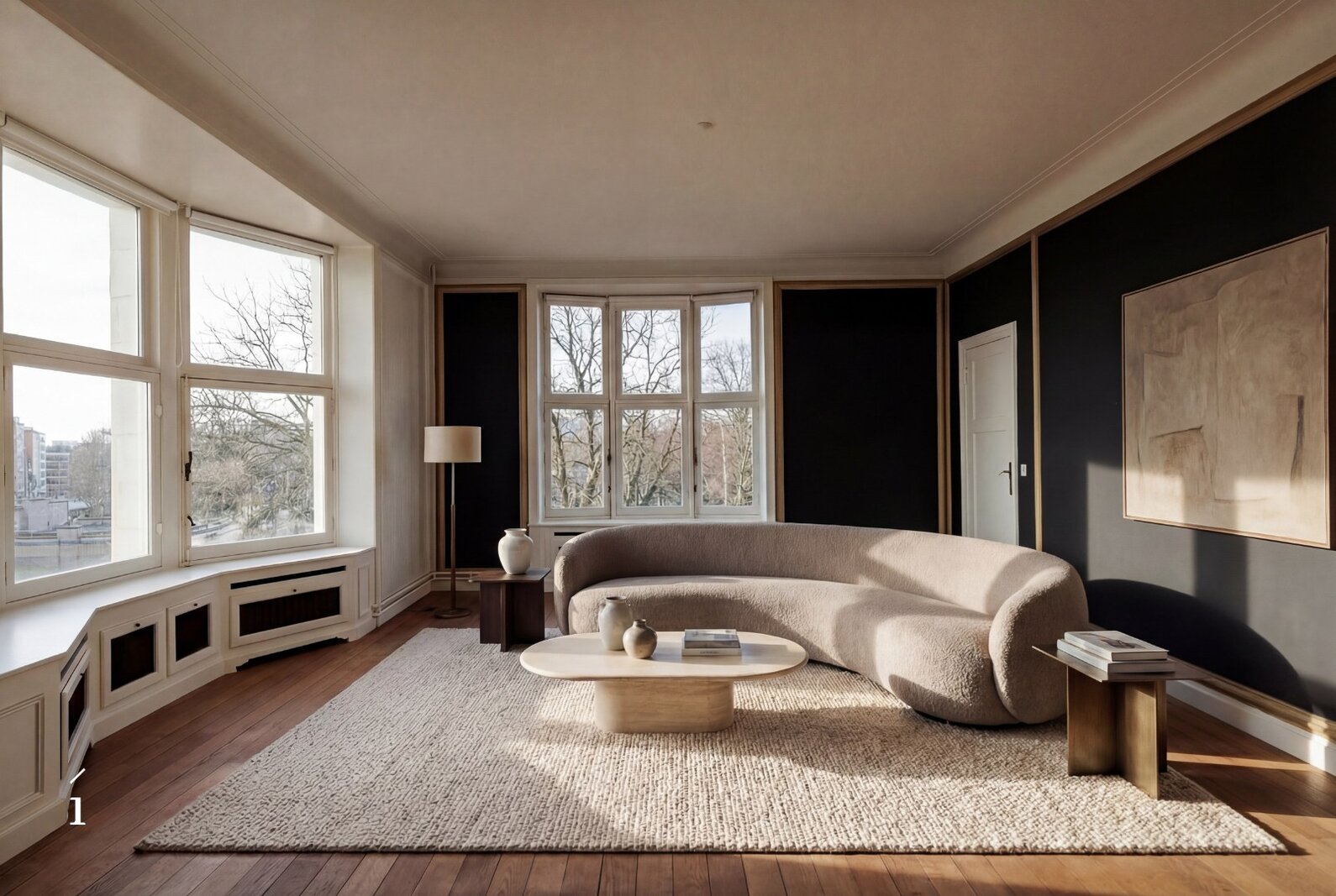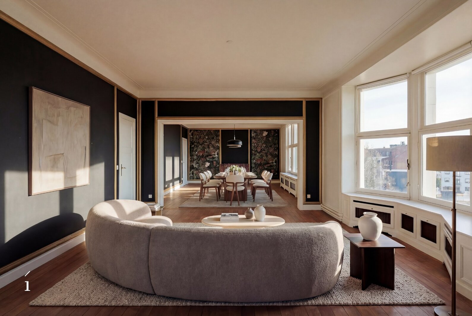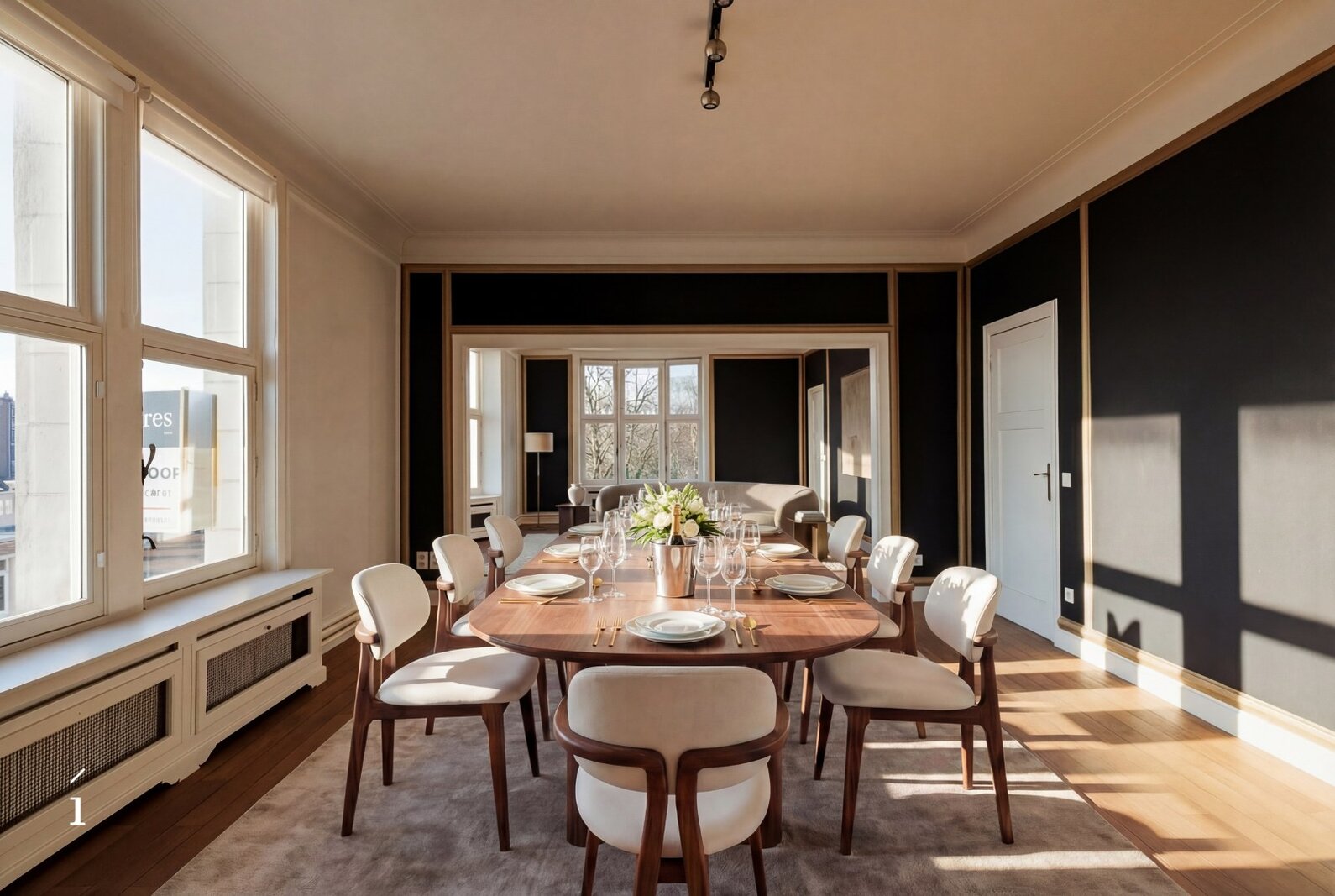 De keuken is opvallend modern, met strakke witte kasten en roestvrijstalen apparaten. De badkamers zijn even eigentijds, waarvan één is uitgerust met een vrijstaand bad en een artistieke muurschildering. Grote ramen in verschillende kamers, waaronder de eetruimte, bieden uitzicht op de stad en het Citadelpark.Een van de meest opvallende kenmerken is het gevarieerde interieurontwerp. Sommige kamers zijn voorzien van gedurfd, patroonrijk behang – van levendige flamingo’s tot herfstachtige taferelen – wat zorgt voor unieke sferen in de verschillende ruimtes. Andere kamers zijn rustiger gehouden, met witte muren en houten vloeren, wat flexibiliteit biedt in de inrichting. Doorheen het hele appartement is er aandacht voor detail, met sierlijsten, stijlvolle verlichtingsarmaturen en opvallende muurtaferelen. De combinatie van hedendaagse designelementen met af en toe een gedurfd accent resulteert in een woonruimte die zowel functioneel als visueel intrigerend is.Om het plaatje compleet te maken kan er nog optioneel een ruime inpandige garage (23 m²) bijgekocht worden voor een meerprijs van 50.000 euro.
