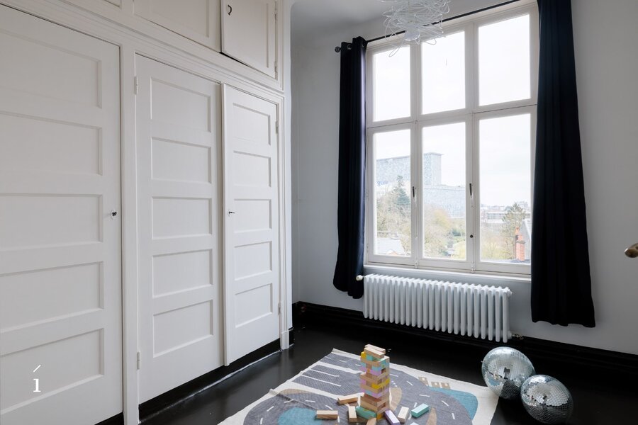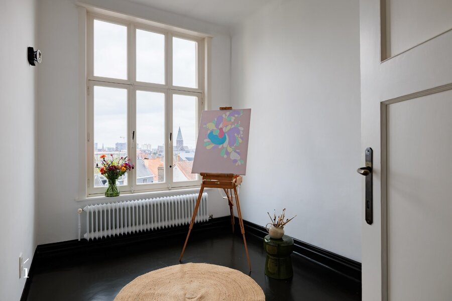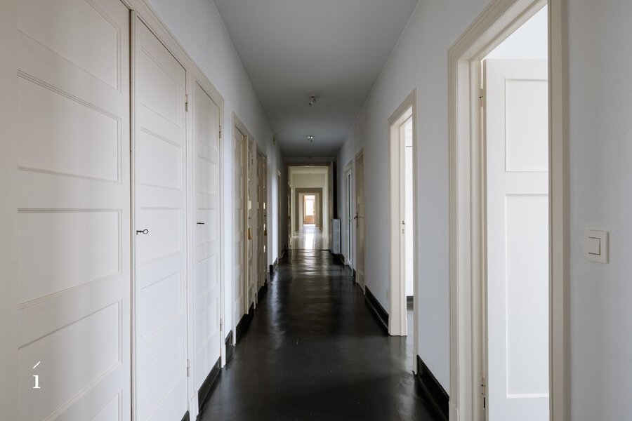 Voor meer informatie of een bezoek via Gilles op gilles@irres.be of 0470 046 650. Dit riant en karaktervol appartement is gelegen op de 4de verdieping met open vergezichten over de stad en ziet uit op de grote vijver van het Citadelpark. Het appartementsgebouw Parc Residence, naar ontwerp van Oscar Van de Voorde, werd gebouwd in 1925. Van de Voorde staat bekend als de hoofdarchitect van de wereldtentoonstelling in 1913 en voor zijn andere werken zoals de Bank van de Arbeid en het Feest- en Floraliënpaleis in het Citadelpark (ICC Gent).Dit uniek appartement van 335 m² combineert modern wonen met een eclectisch design. Het villa-appartement beschikt over een royale woon- en eetkamer, vijf slaapkamers, twee badkamers, een moderne keuken, een bijkeuken en een bureauruimte. Het interieur wordt gekenmerkt door een heldere, luchtige sfeer, met grote ramen die overvloedig natuurlijk licht binnenlaten. Één centrale gang verbind de ruimtes met elkaar, wat zorgt voor een vlotte circulatie doorheen het appartement. De aanwezigheid van een balkon voegt een buitenruimte toe aan het geheel.