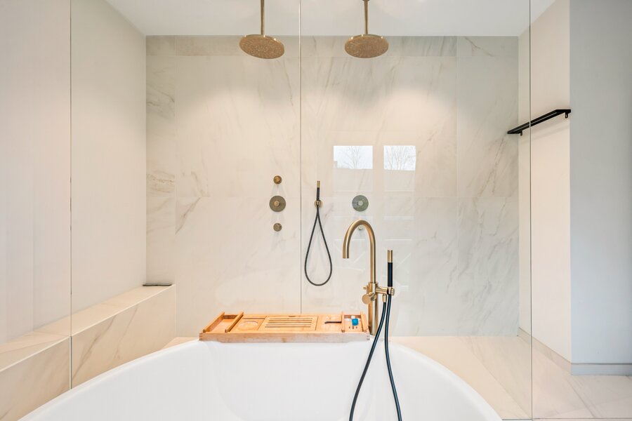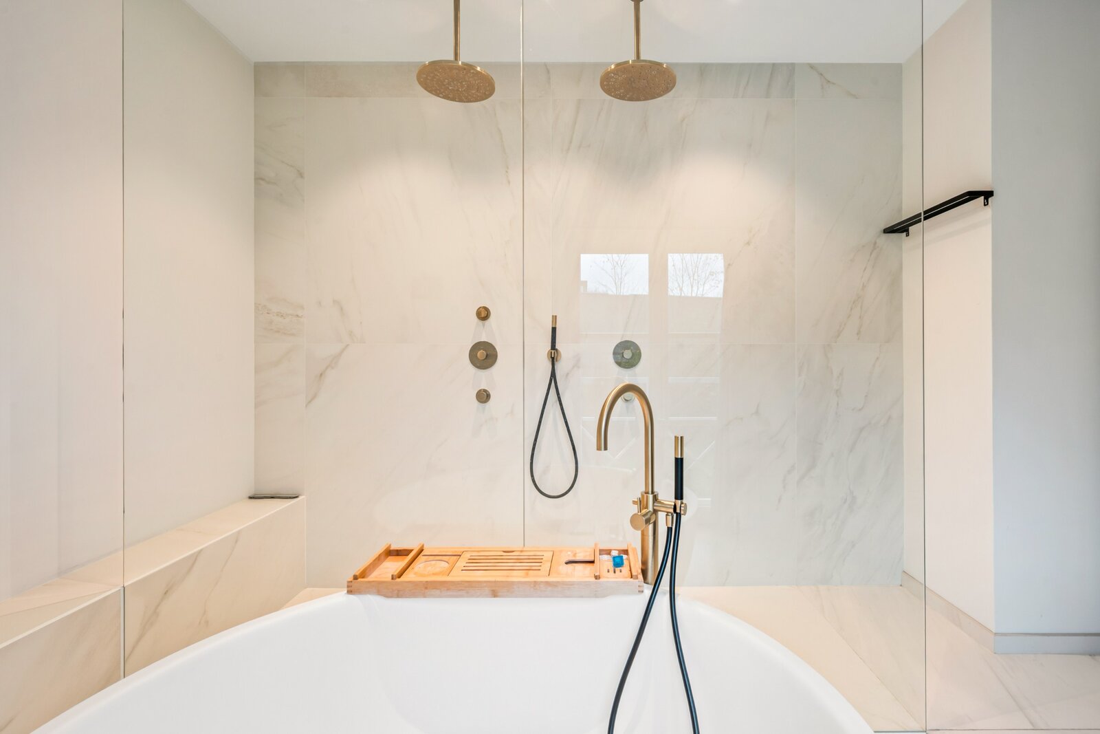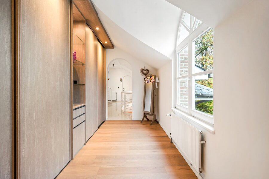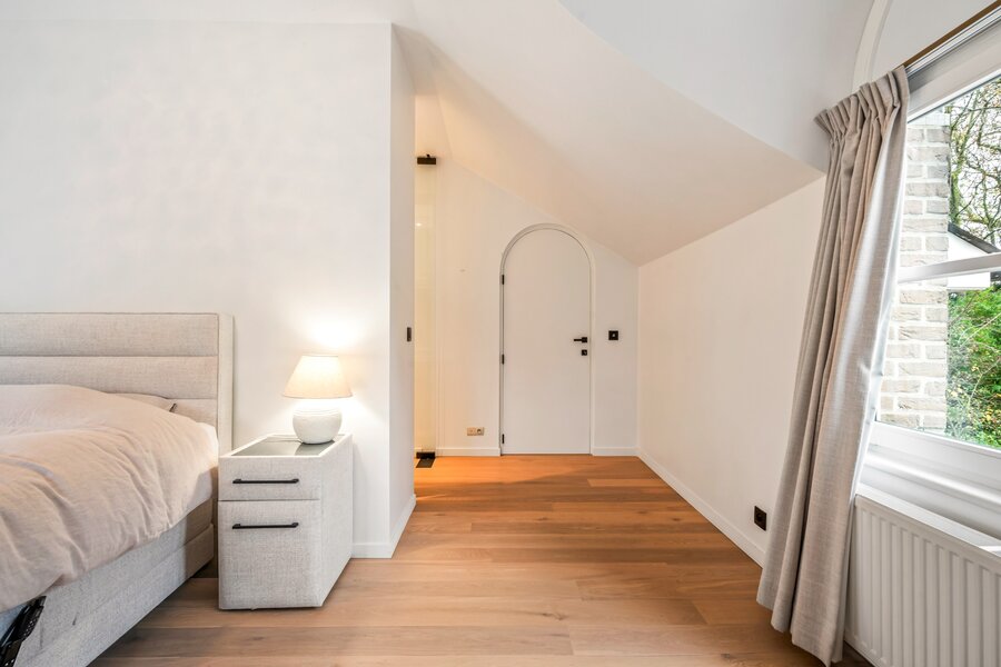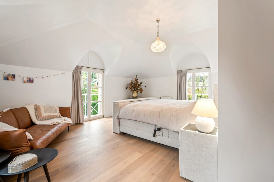 De masterbedroom is een waar luxe toevluchtsoord, voorzien van een ruime ingemaakte dressing en een elegante badkamer met ligbad én dubbele inloopdouche. Daarnaast bevinden zich op deze verdieping nog drie volwaardige slaapkamers, een extra badkamer en een apart toilet.