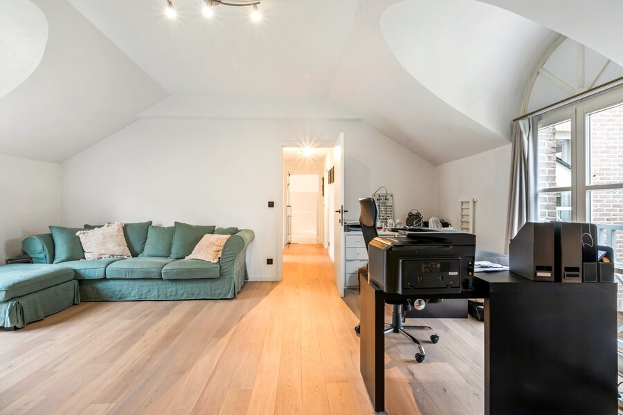 De bovenste verdieping biedt een zeer ruime ingerichte zolder, die momenteel dienst doet als fitnessruimte. Deze open ruimte kan ook dienen als speelzolder, extra slaapkamer, atelier of opslag.