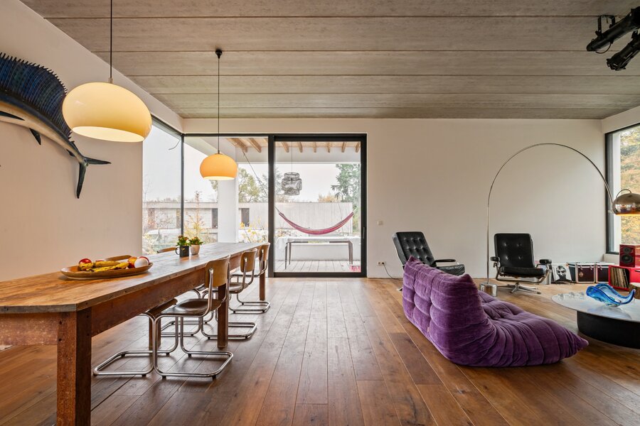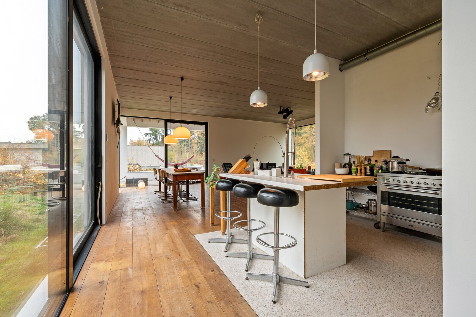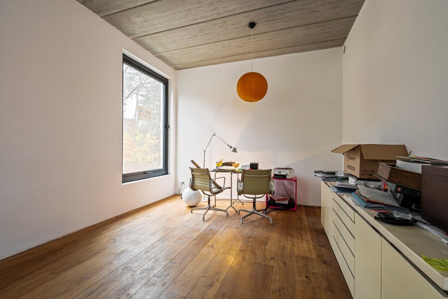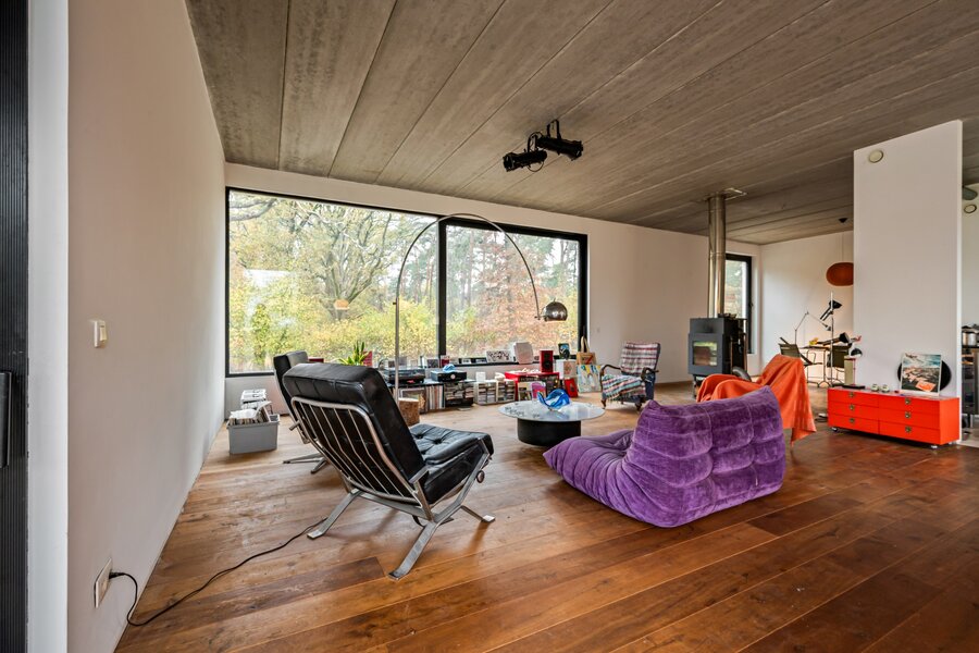 De leefgedeeltes bevinden zich op de eerste verdieping waardoor u hier geniet van extra veel natuurlijke lichtinval. De grote eyecatcher hier is de woonkamer met prachtig zicht op het natuurgebied aan de overkant gelegen. De houtkachel zorgt voor extra warmte en gezelligheid in de wintermaanden.
